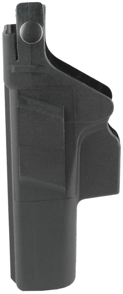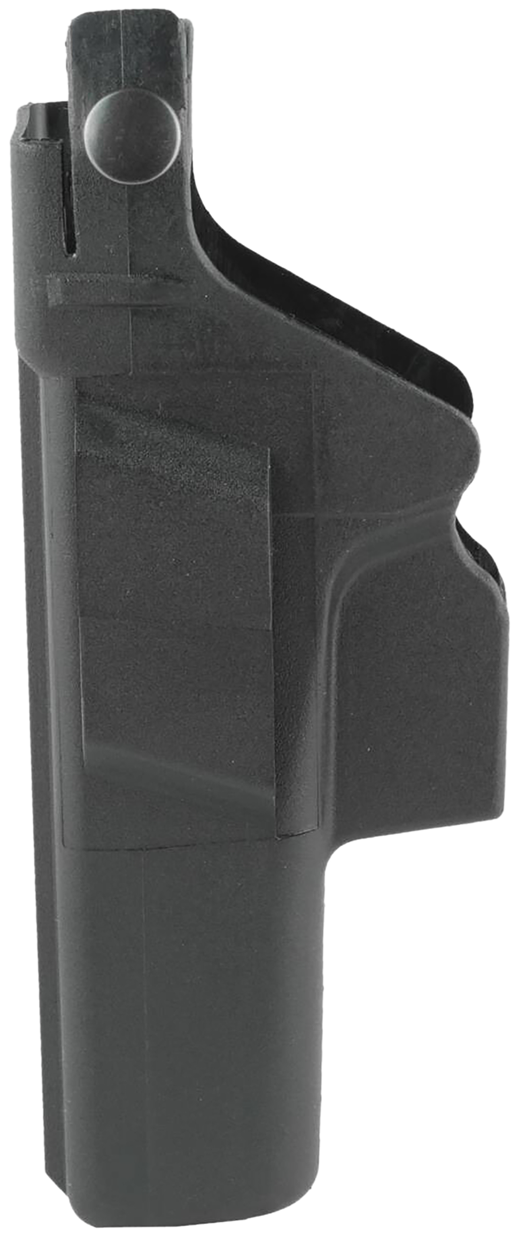 Glock's duty holster secures the entire pistol safely with a thumb break retention strap.The tough basic model fits 1.77" belt widths.