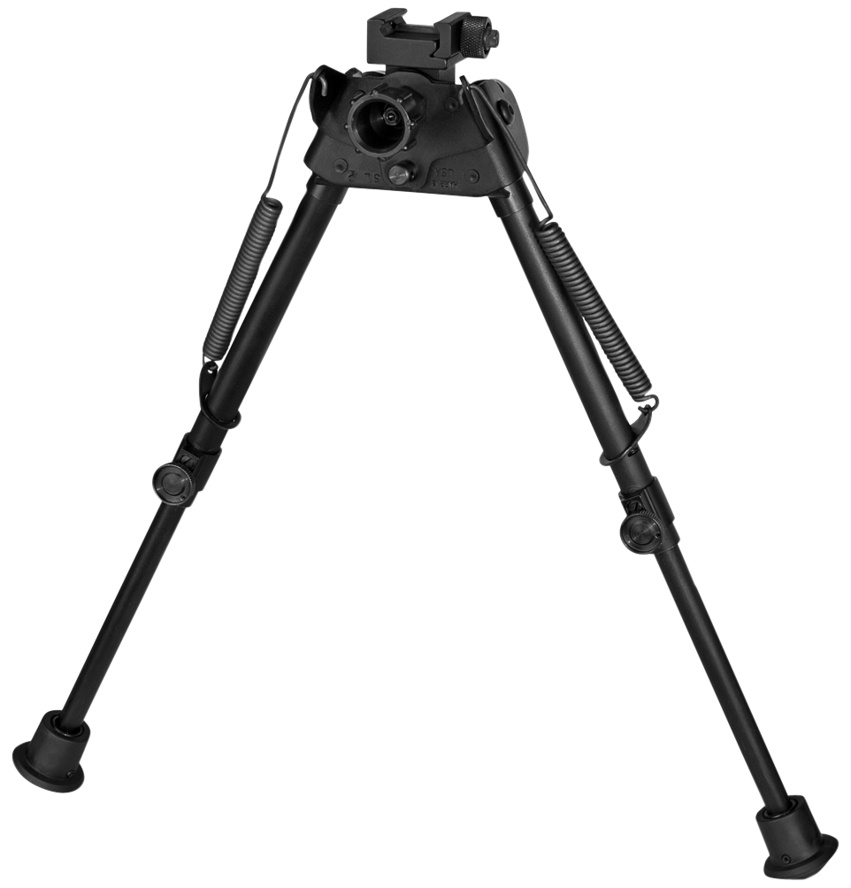 Harris bipods clamp to picatinny rail rifles, and have a sling attachment provision.Spring loaded self-leveling folding legs are quickly adjustable for height.Manufactured with heat treated steel and hard alloys, bipods have a black anodized finish.