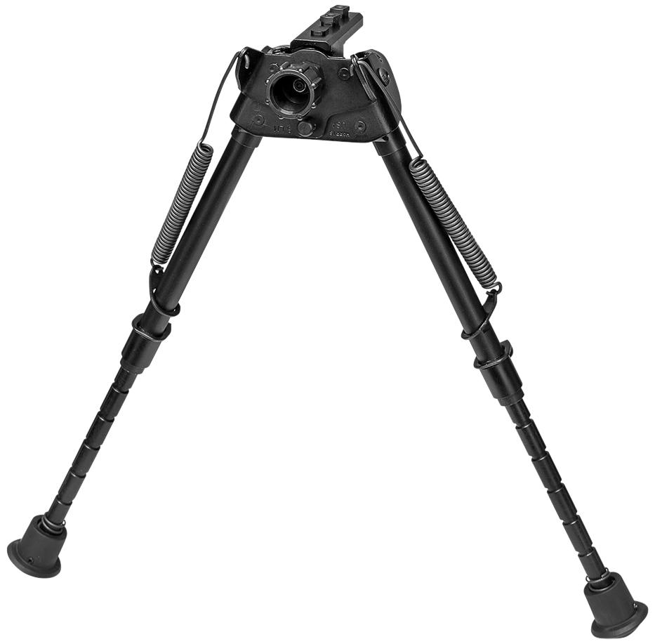 Harris bipods have a sling attachment provision.Spring loaded folding legs are quickly adjustable for height.Manufactured with heat treated steel and hard alloys, bipods have a black anodized finish.This model has notched legs with a swiveling head to compensate for uneven terrain.Type Of Feet: RubberMaterial: Steel/AluminumVertical Adjustment: 9-13"Weight: 15 ozAttachment Type: M-LOKNo. Of Legs: 2View more