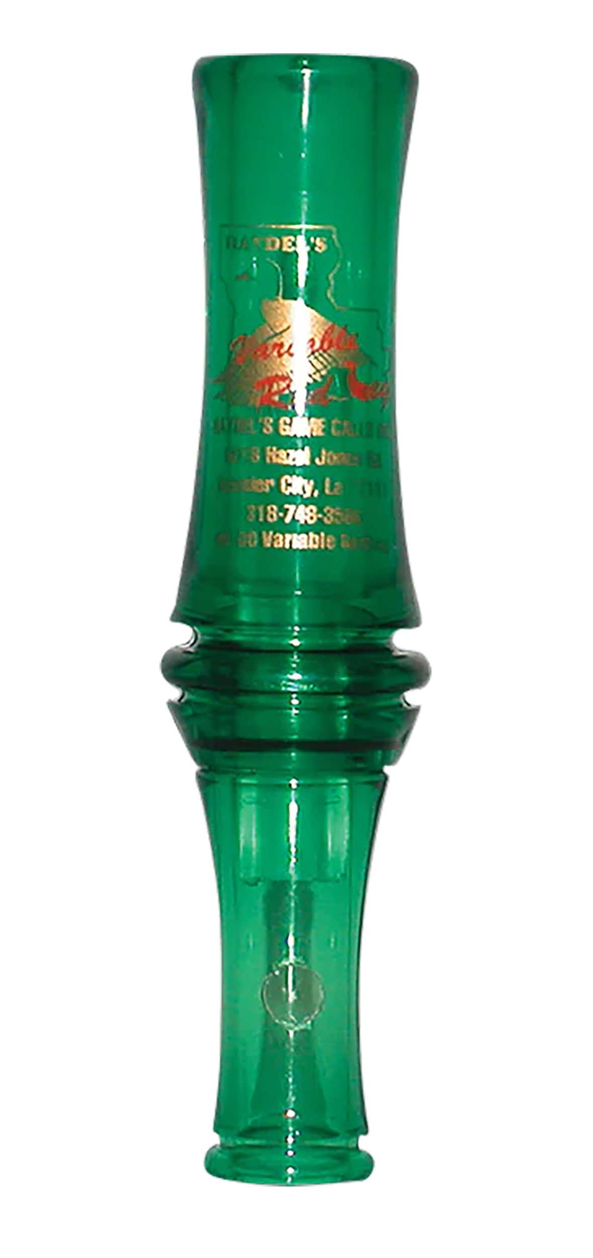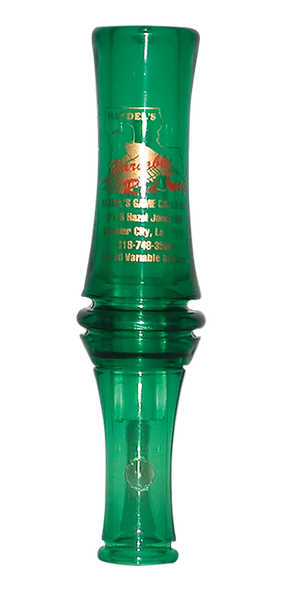 The variable "redleg" mallard is the variable tone version of the "redleg".The tuning hole allows the caller to sound like two different ducks.It has a double reed and comes with a lanyard.
