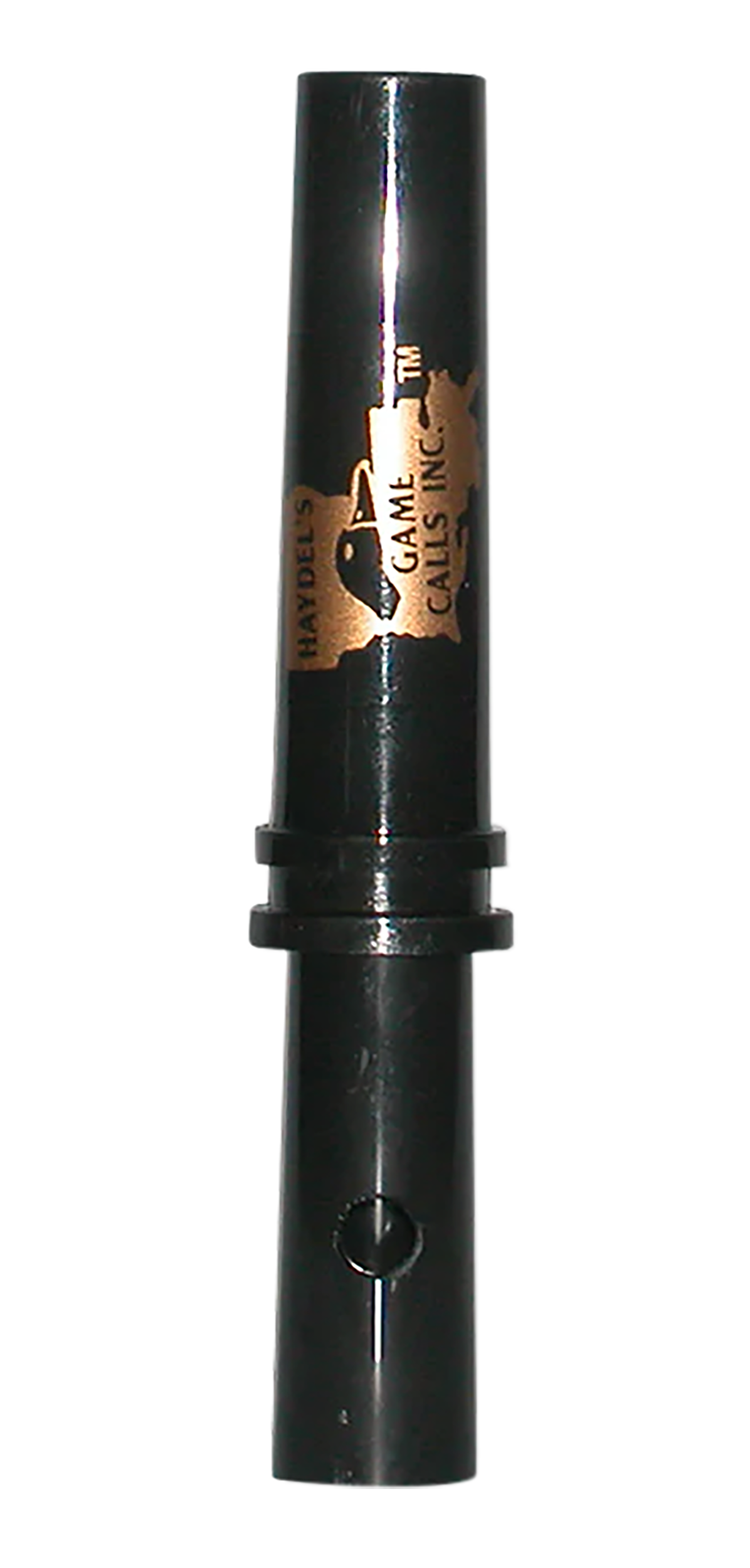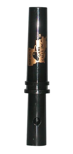 Opening and closing the hole in the exhaust barrel allows the caller to sound like two different mallards.Closed for older hen, open for higher pitch of younger hen.Type: Reed CallSpecies: DucksMaterial: AcrylicSound Species: Mallard HenElectronic: NoBattery Size: NoneColor: BlackSounds: MallardView more