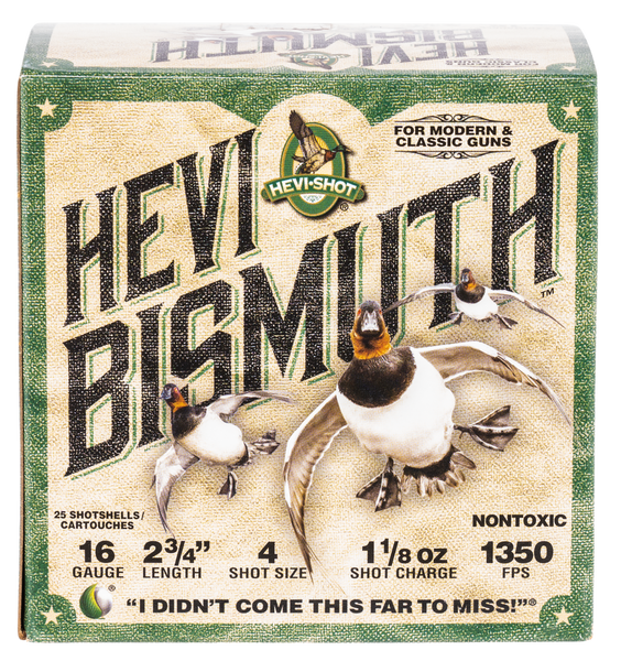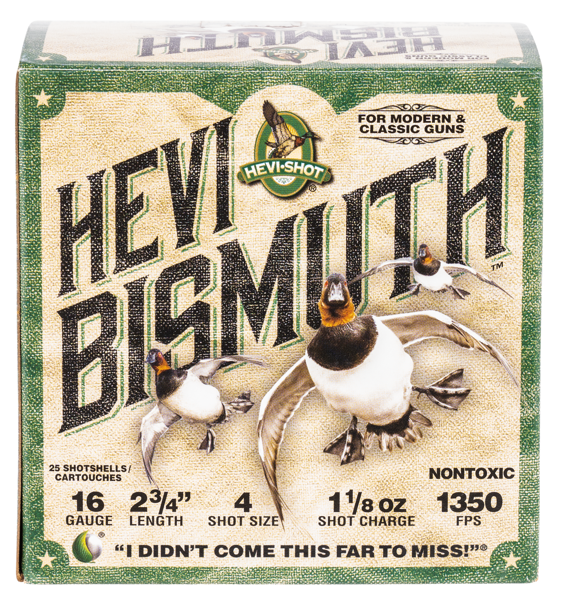 Hevi-bismuth is 22% more dense than steel, which allows you to drop down a shot size for the same lethality.Hevi-shot's bismuth is safe to shoot in modern and classic guns.