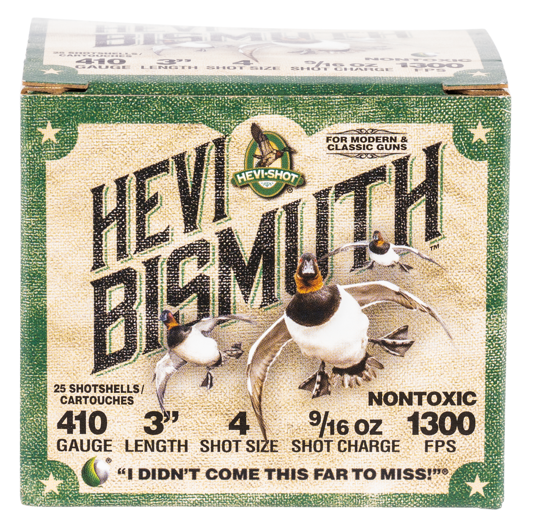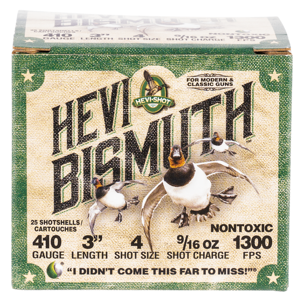 Hevi-bismuth is 22% more dense than steel, which allows you to drop down a shot size for the same lethality.Hevi-shot's bismuth is safe to shoot in modern and classic guns.