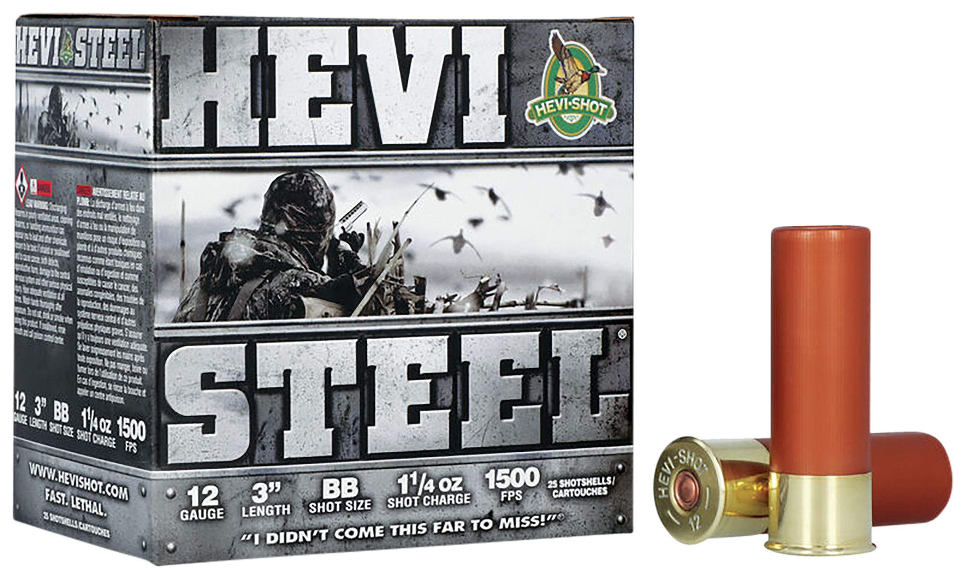 Hevi-shot's hevi-steel delivers major kinetic energy.It features an increase in speed that delivers 9% more energy at 30 yards and 8% at 40.More knockdown power and fewer crippled birds.Combining higher velocity, a best-in-class wad, and precision manufacturing techniques deliver the ultimate in performance.