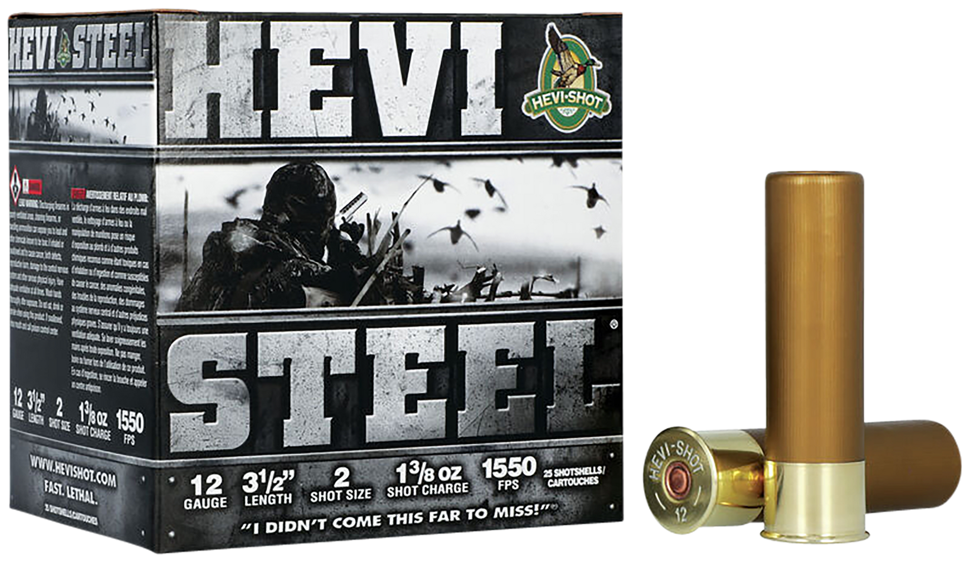Hevi-shot's hevi-steel delivers major kinetic energy.It features an increase in speed that delivers 9% more energy at 30 yards and 8% at 40.More knockdown power and fewer crippled birds.Combining higher velocity, a best-in-class wad, and precision manufacturing techniques deliver the ultimate in performance.