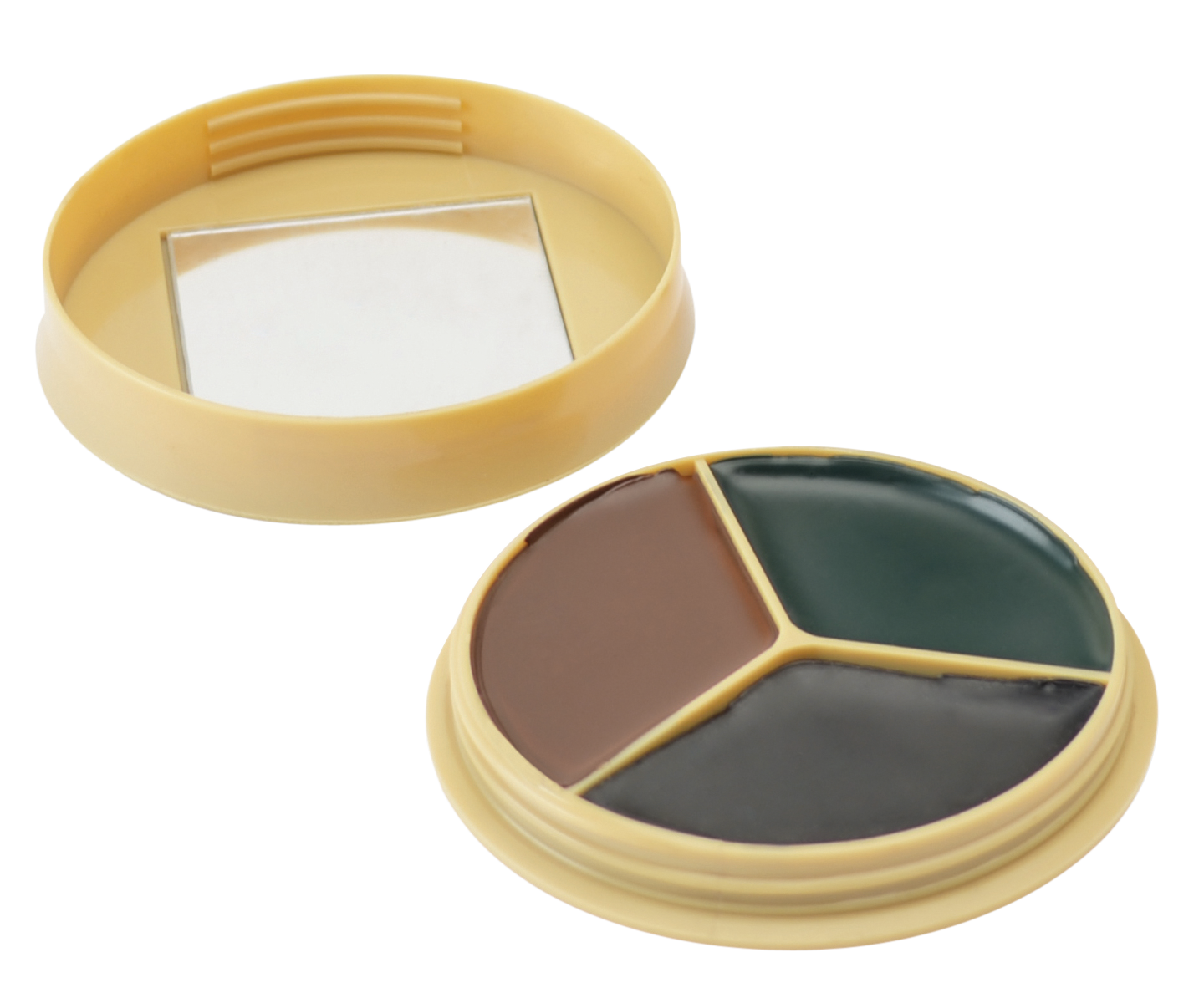 Hme's camo face paint kit is a long lasting non-glare face paint kit with integrated mirror in the lid.It features the most popular colors for effective camouflage; black, brown and dark green.