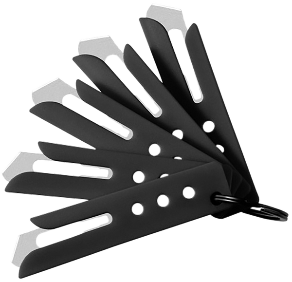 Expel black nylon blade guards compatible with expel scalpel & expel folding scalpel.Includes 5 blade guards, 5 #60 scalpel blades and one key ring.