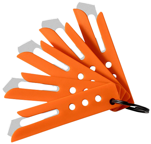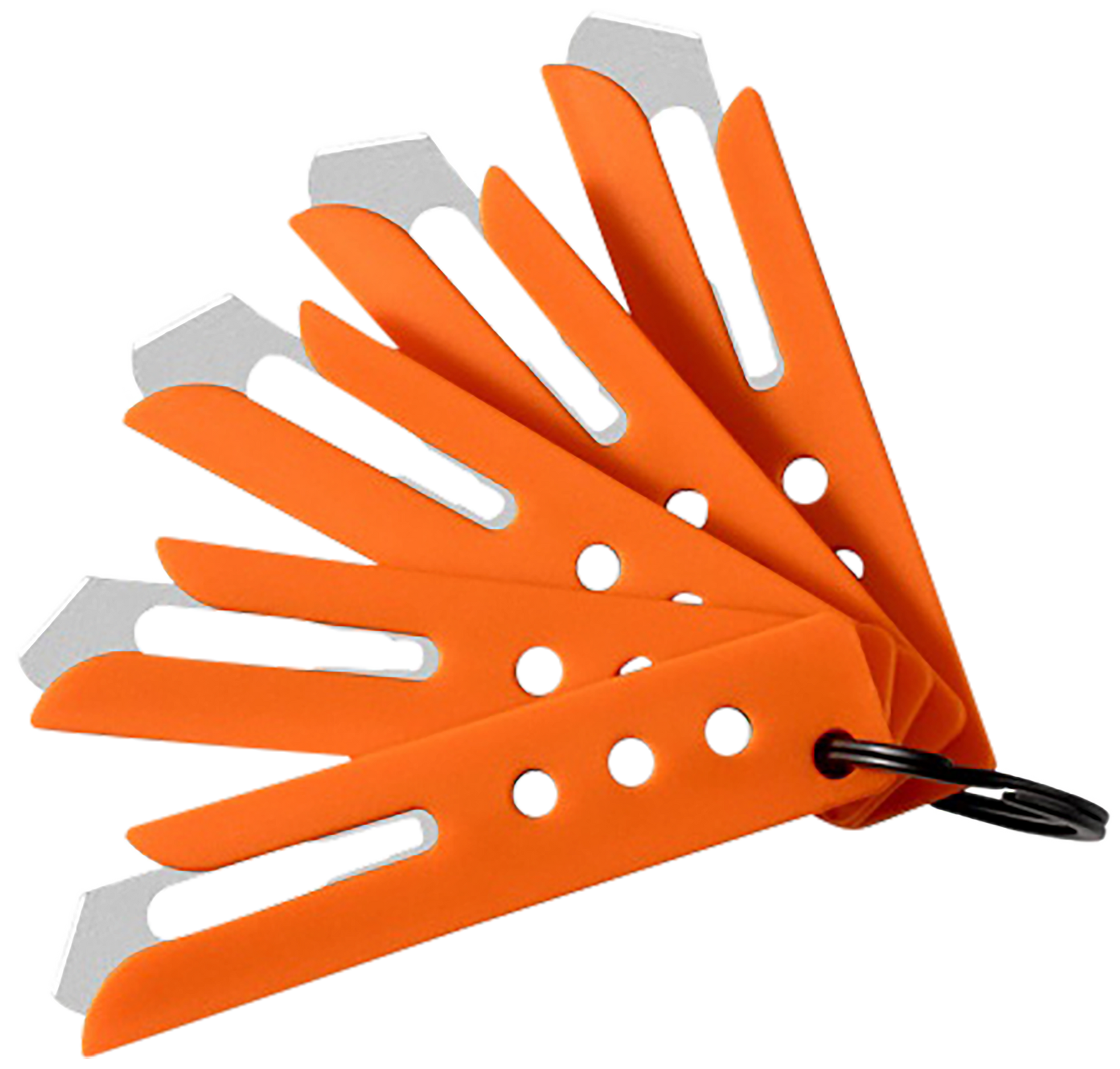Expel orange nylon blade guards compatible with expel scalpel & expel folding scalpel.Includes 5 blade guards, 5 #60 scalpel blades and one key ring.View more