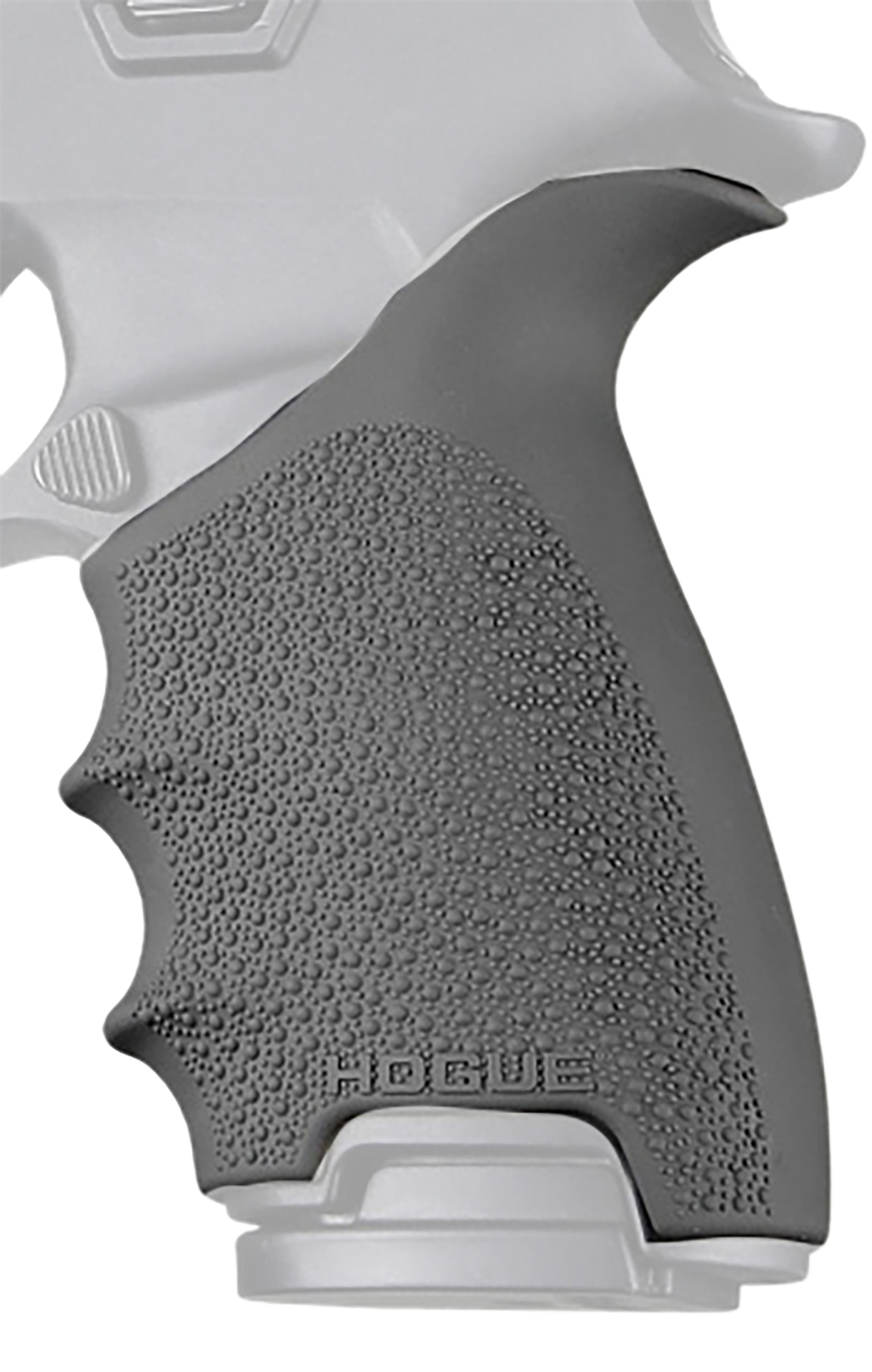 Gentle palm swells fit comfortably in hand.Finger grooves naturally position fingers for optimal grip.Textured with cobblestone pattern for increased comfort and grip.Beavertail cushions the hand on recoil and offers increased hand comfort higher on the grip.Made from long lasting durable thermoplastic elastomer.Material: RubberView more