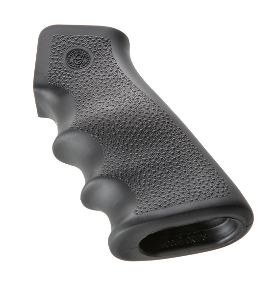 Hogue rubber grips are molded from durable synthetic rubber that is not spongy or tacky, yet provides a soft recoil absorbing feel without affecting accuracy.The flexibility of the materials and molding process produces rubber grips with features that out perform all other makes.It is molded with a reinforcing insert directly engaging with the firearm frame for a rock-solid grip-to-frame fit.The cobblestone texture provides an efficient non-slip, non-irritating stippling pattern.This model has a black finish and is compatible with ar-15.