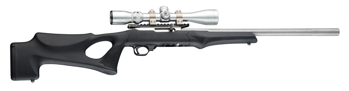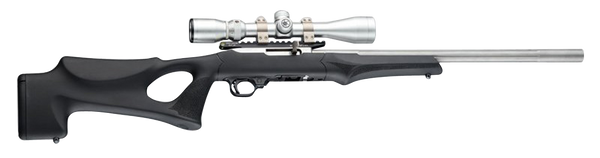Hogue stocks come standard with aluminum pillar bedding.These pillars, inserted at critical action mounting bolt locations, guarantee an accurate, rock-solid action fit that will not shoot loose.The overmolded tactical thumbhole stock does not use the original barrel band, but does utilize the original stock attachment screw.It is not compatible with look-alike lever action model rifles.This model has a black finish and is compatible with ruger 10/22 with.920" barrel channel.