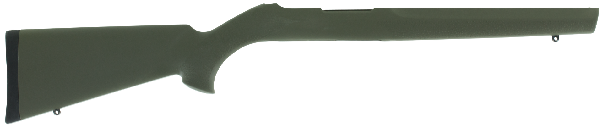 Hogue stocks come standard with aluminum pillar bedding.These pillars, inserted at critical action mounting bolt locations, guarantee an accurate, rock-solid action fit that will not shoot loose.The overmolded stock does not use the original barrel band, but does utilize the original stock attachment screw.It is not compatible with look-alike lever action model rifles.This model has an od green finish and is compatible with ruger 10/22 with.920" barrel channel.
