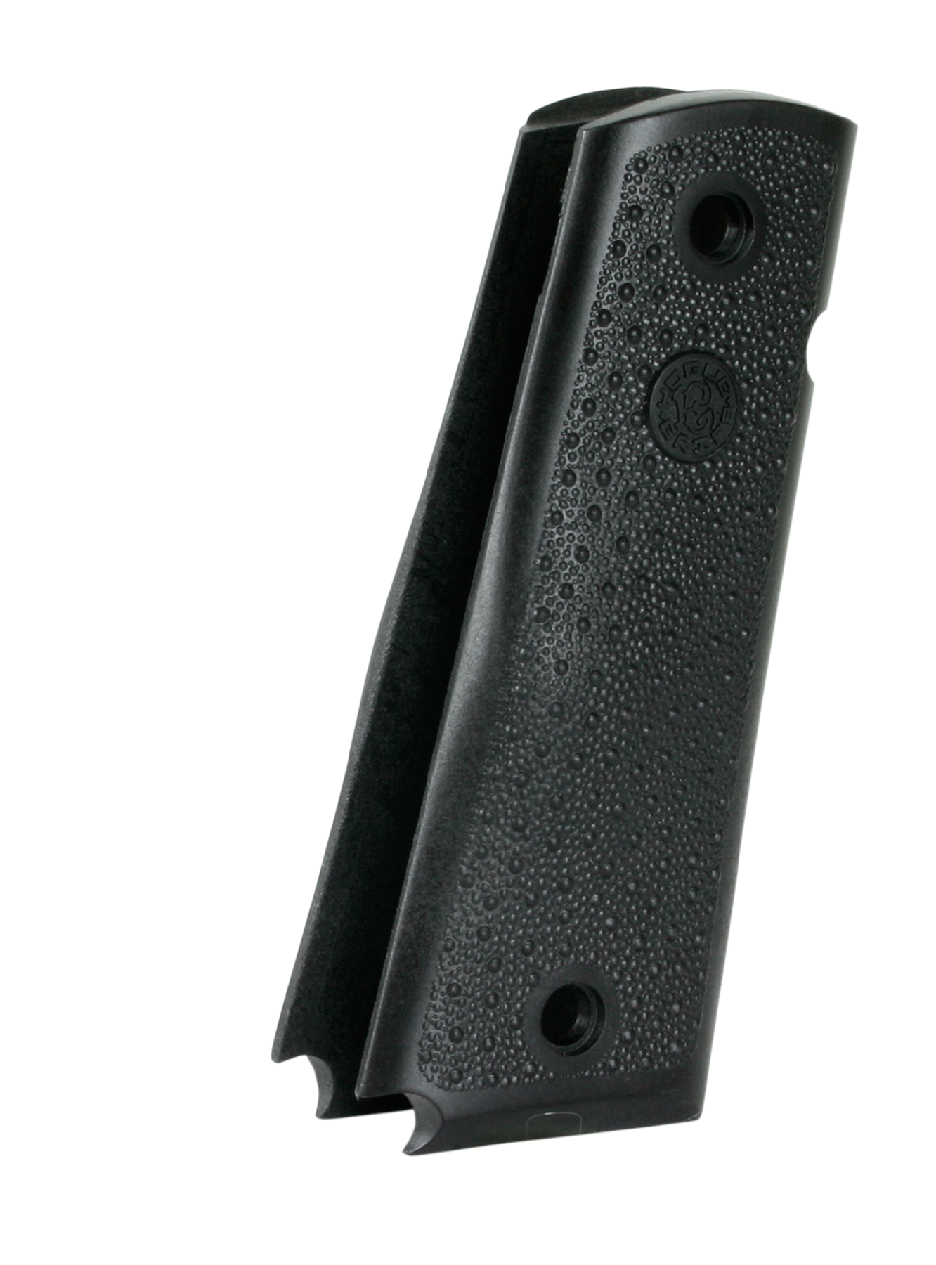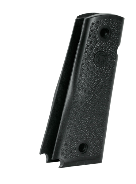 Hogue's nylon grips features high strength, durability and can be worked like wood allowing a user to customize their own grip.Nylon grips also don't telegraph the location of a concealed handgun.This model has a black finish and is compatible with 1911 government.It is designed to work with factory hardware.