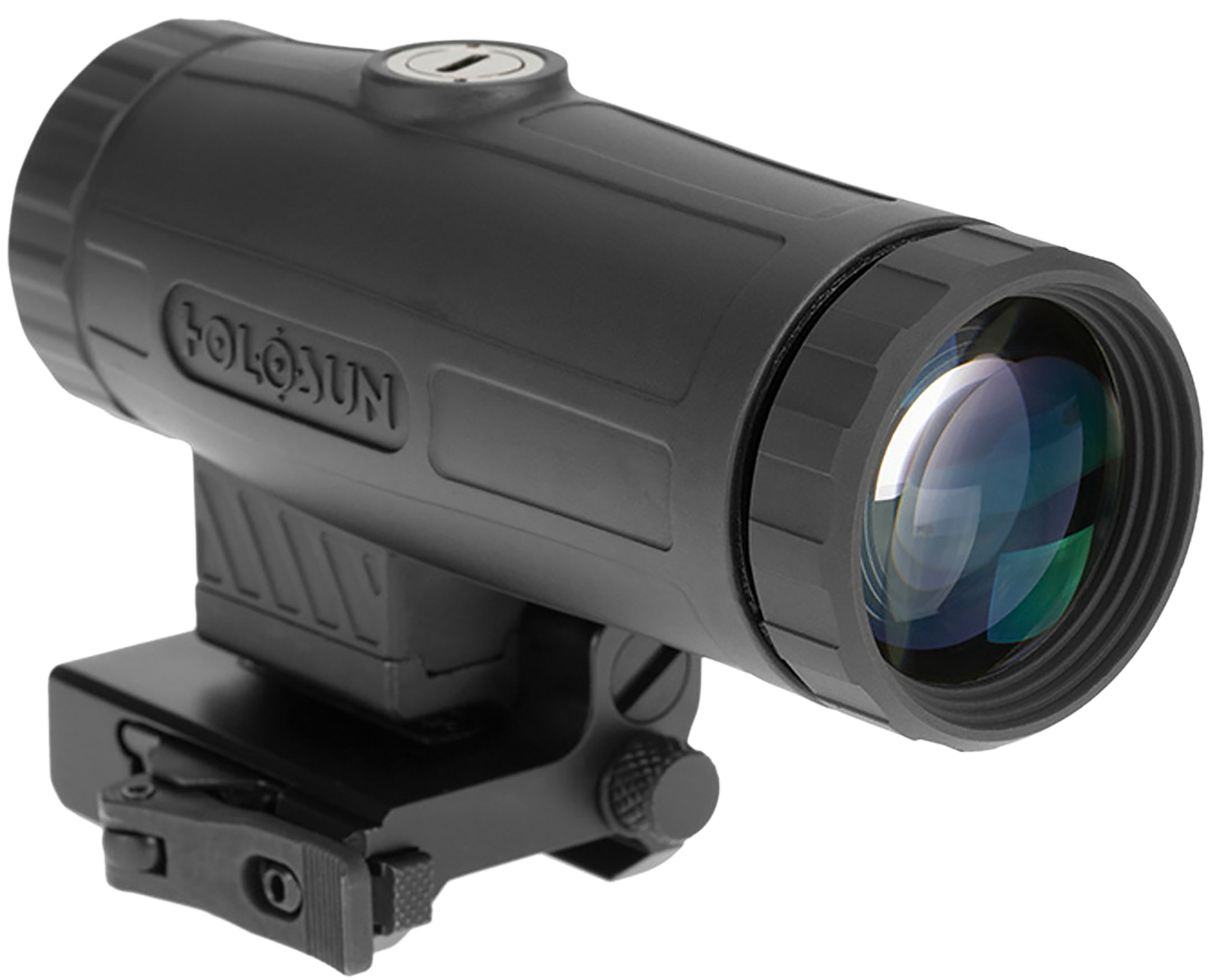 The hm3x is an aluminum bodied 3x magnifier designed for use in conjunction with a red dot sight.The hm3x is feature-packed and includes a quick release, ambidextrous, flip-to-side picatinny rail mount.Holosun includes a spacer with the hm3x that provides compatibility with absolute and lower 1/3 co-witness dot heights for maximum compatibility.The hm3x has a generous 2.75 of eye relief, is ip67 certified water resistant, and includes windage and elevation adjustment for precision zeroing to your optics zero.The hm3x also includes a built-in flat driver tool for easy adjustments.