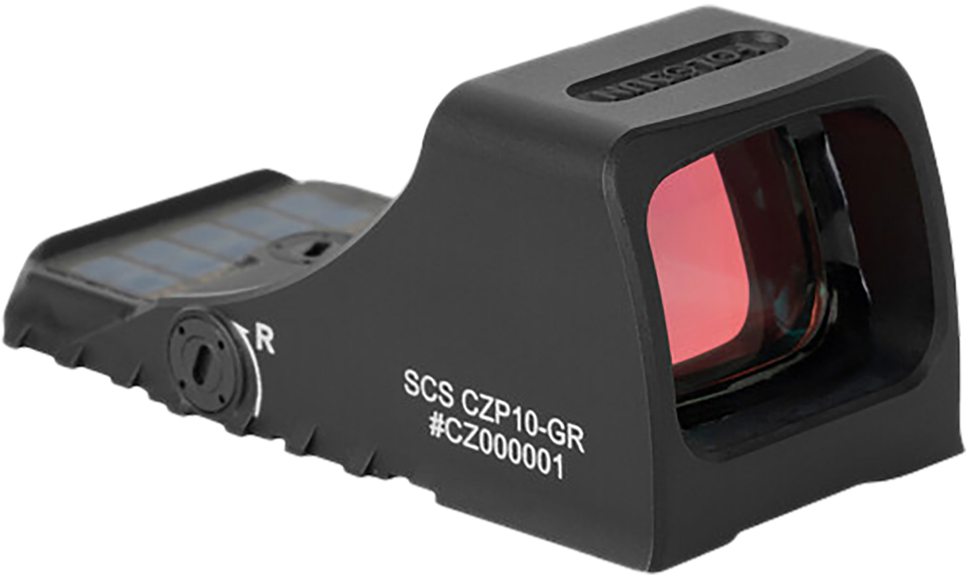 The scs-p10-gr (solar charging sight) is designed for the cz p10 series pistol.It is designed to attach directly to the slide without an adapter plate and uses our innovative solar charging system with multi-directional light sensors to automatically adjust brightness in dynamic situations.The scs can potentially operate indefinitely using an internal, rechargeable 20,000-hour power reserve meaning under even moderate exposure to bright light, you will never need to change batteries again.The scs also includes an intensity override function which locks the optic into a high brightness mode for 30 minutes and a low power indicator which warns of low battery days before charging is needed.Ip68 waterproof.