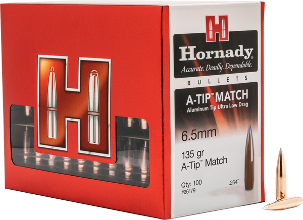 Years of research and testing by the hornady ballistic development group, combined with advanced manufacturing processes and quality control measures have led to the creation of the ultimate low drag, high-performance match bullet.Aluminum tip is precision machined and longer than polymer tips which moves the center of gravity and enhances in flight stability.Coefficient: .321Bullet Type: A-Tip MatchBullet Diameter: .264Weight: 135 grBullet Caliber: 6.5mmJacket Material: CopperBullet...View more