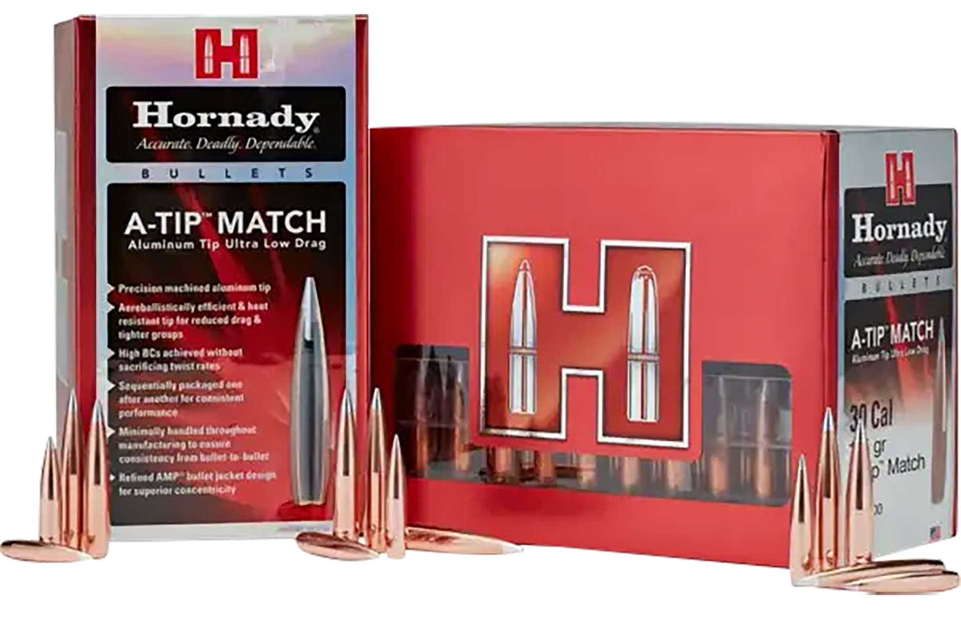Years of research and testing by the hornady ballistic development group, combined with advanced manufacturing processes and quality control measures have led to the creation of the ultimate low drag, high-performance match bullet.Aluminum tip is precision machined and longer than polymer tips which moves the center of gravity and enhances in flight stability.
