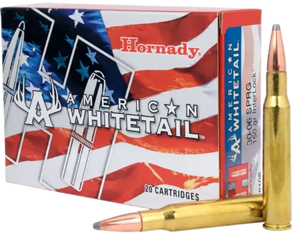 American whitetail exclusively features hornady interlock bullets with exposed lead tip for controlled expansion and lead-alloy core for reliably hard-hitting performance.The interlock ring inside the bullet jacket is embedded into the core, ensuring that core and jacket remain locked together during expansion for maximum mass and energy retention.American whitetail is loaded to conventional velocities, premium propellants are selected to achieve optimum pressure and consistency, ensuring each load is also compatible with semi-automatics.