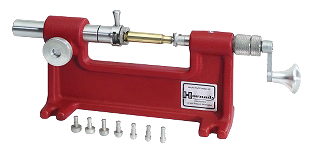 The way the case is locked in place into the shell holder, the trimmer accurately restores fired cases to the correct length no matter the thickness of the cartridge rim.The lever locks the case in place.The micro adjust cutter allows.001" changes without moving the case.Its large diameter, replaceable cutting head is made of ultra-hard tool steel and trims cases up to 50 caliber.Includes seven of the most popular pilot sizes:.22 cal,.6mm,.270 cal,.7mm,.30 cal,.38 cal and.45 cal.*use only standard hornady shell holders and pilots.
