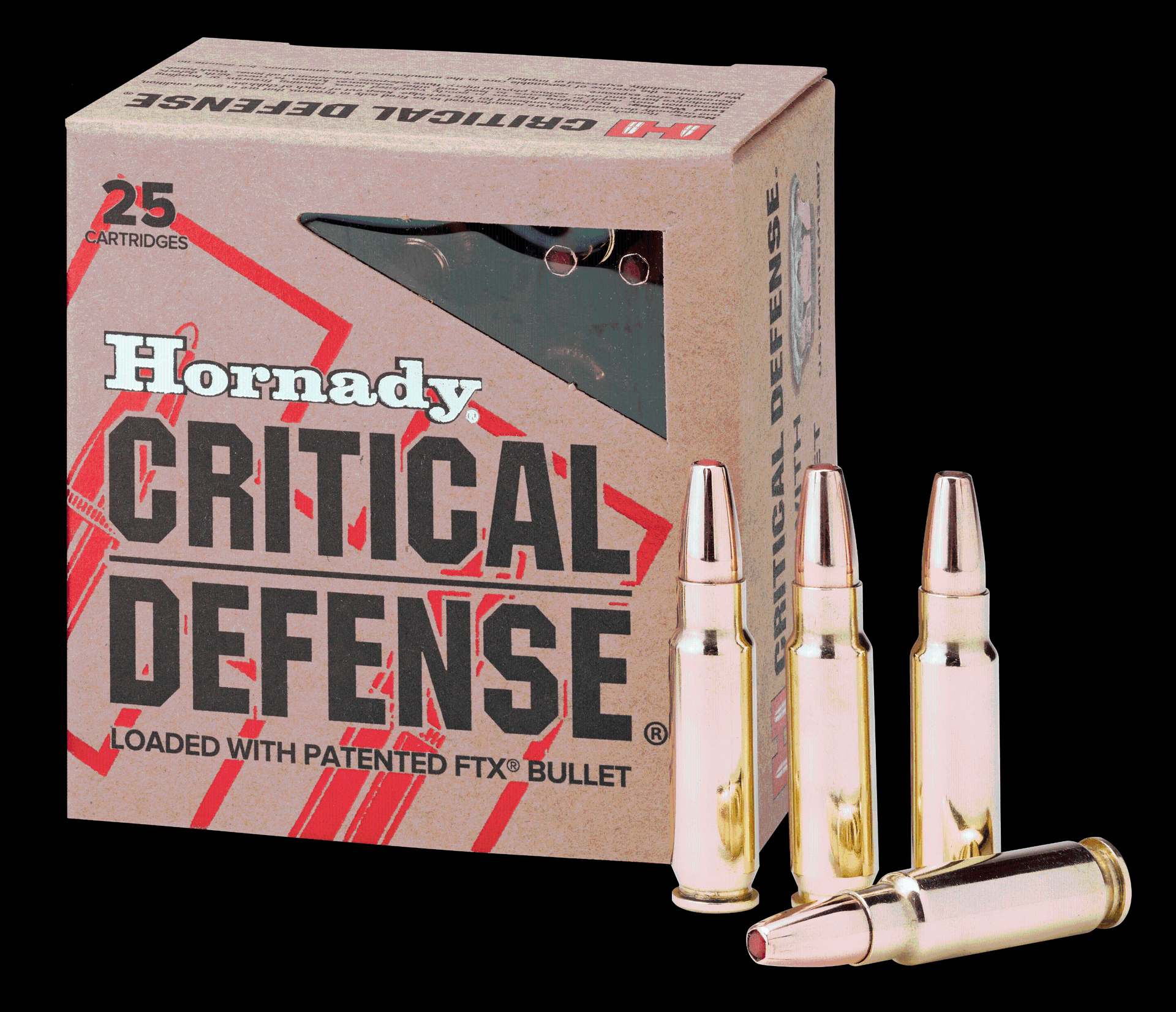 The patented flex tip technology used in critical defense ammunition eliminates the clogging and inconsistency that often plagues hollow point bullets.Hornady achieved this by using the same tip material used in leverevolution ammunition.All critical defense ammunition is loaded in nickel-plated cases for increased visibility in low-light situations.Premium low flash propellants deliver proven performance, even in very short-barreled handguns, and won't disrupt vision.