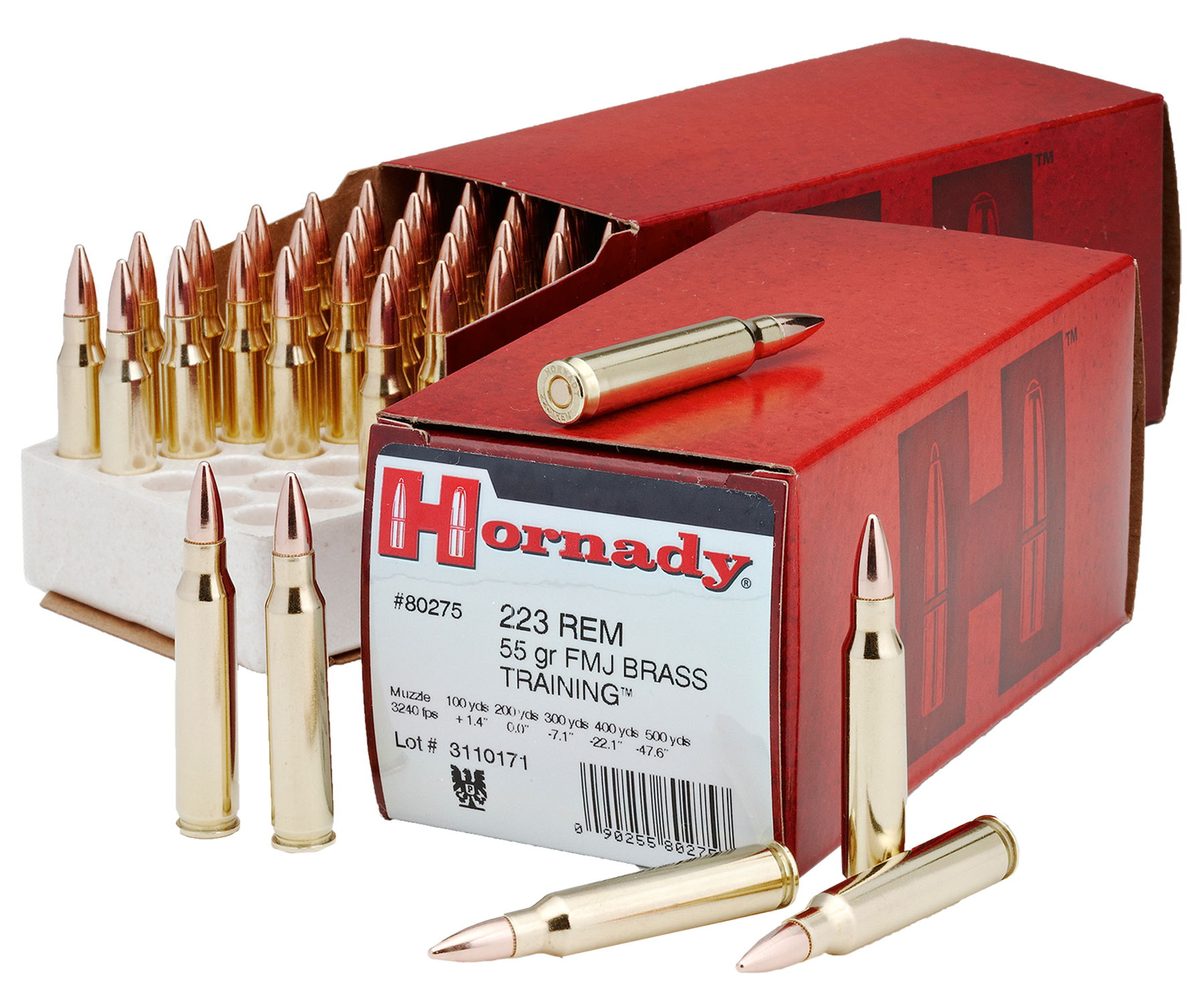 Custom ammunition balances expansion and is well-suited to medium and large-sized game.It provides an all-around solution for hunting, target practice, or just fun.Caliber: 223 RemBullet Type: Full Metal Jacket Boat TailBullet Weight: 55 grMuzzle Energy: 1282 ft lbsMuzzle Velocity: 3240 fpsRounds Per Box: 50Boxes Per Case: 10Application: HuntingCasing Material: BrassHazair: YesView more