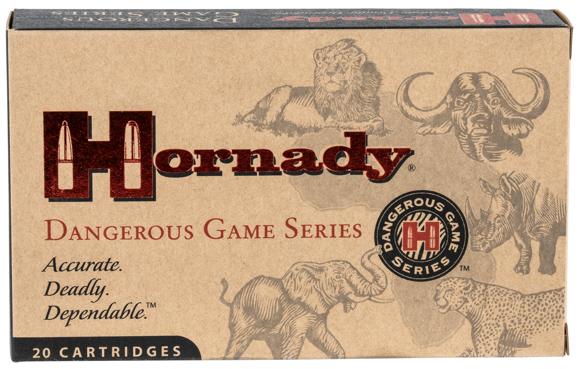 Dangerous game series provides big, heavy bullets with high weight retention.Begin the controlled expansion of the dgx bonded bullet.Follow up with the deep penetration of dgs through thick hide, dense muscle, and hard bone.Powders are carefully matched to each load to ensure optimum pressure and velocity, and to regulate in double rifles.Dangerous game is produced with strict quality controls for optimal performance on your destination hunt.