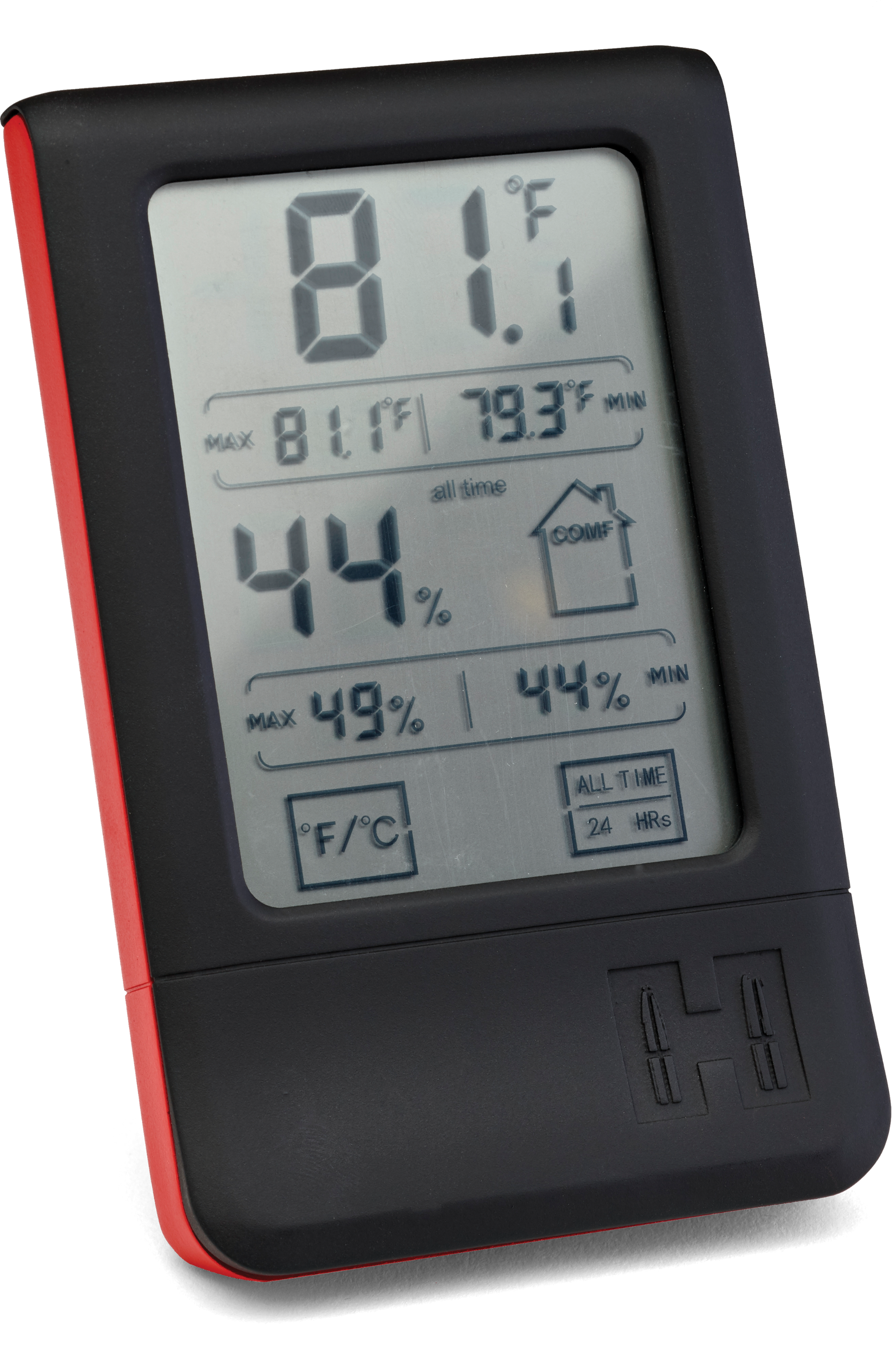 Hygrometer displays high/low for temperature and humidity in fahrenheit or celsius on large touchscreen display.Install quick-connect bracket on interior door or wall of safe or vault room, or use fold-out stand.