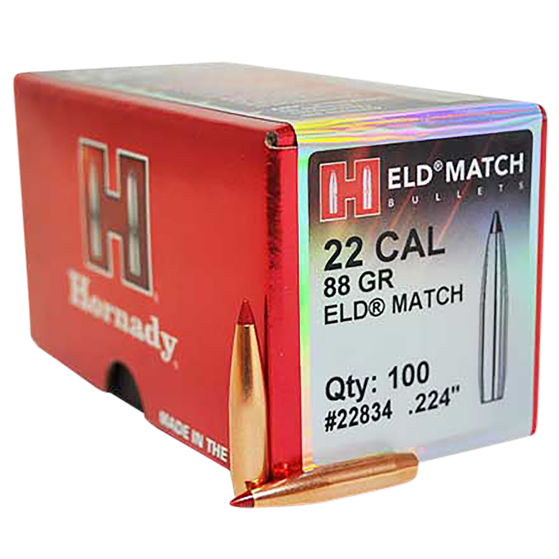 Hornady's eld match (extremely low drag match) bullets are technologically advanced, enhanced accuracy target bullets featuring heat shield tips with the ideal meplat (tip point) combined with numerous design features that deliver the highest-in-class ballistic coefficients, superior accuracy and extreme consistency from bullet to bullet, lot to lot.An optimum secant ogive and boat tail design along with the heat shield tip produce a bullet with the highest possible ballistic coefficient in its class.The tip is immune to the effects of aerodynamic heating and retains its shape to provide a perfect meplat (tip) that is always the same shape.