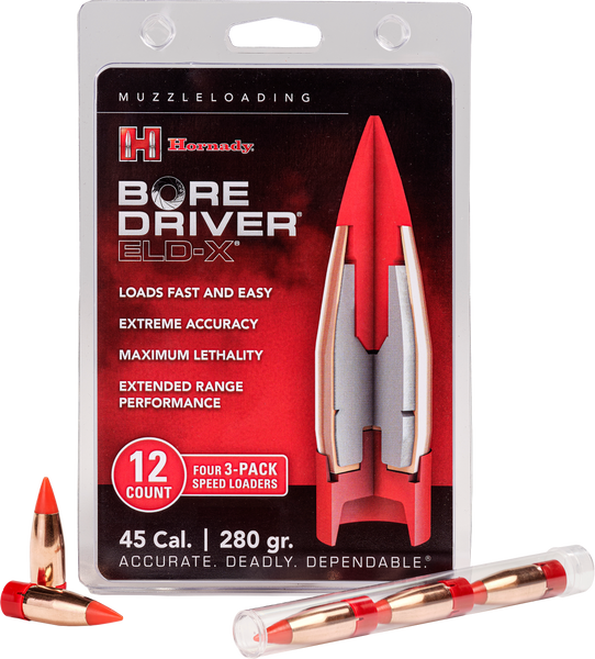 The bore driver delivers the ultimate in muzzleloader performance.At the heart of the system is a polymer base (not a sabot) that seals the bore to deliver maximum energy transfer and accuracy.Atop the base is an eld-x or ftx bullet, featuring a rugged gilding metal jacket coupled with polymer tip technology and an interlock ring that delivers maximum lethality.