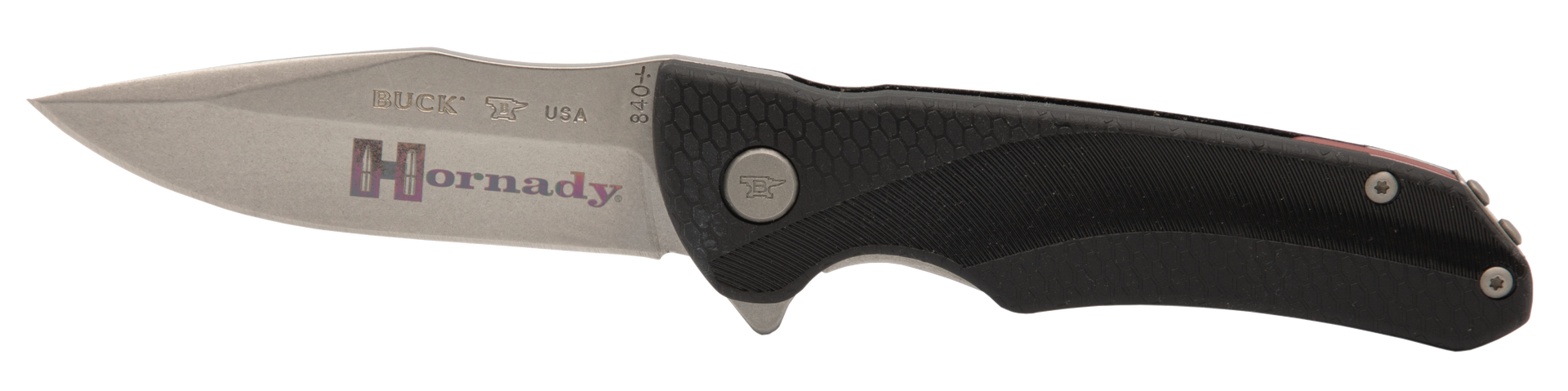 Laser engraved hornady logo.Black glass-filled nylon handle.Tumbled.420hc stainless steel, drop point blade.Deep pocket clip.