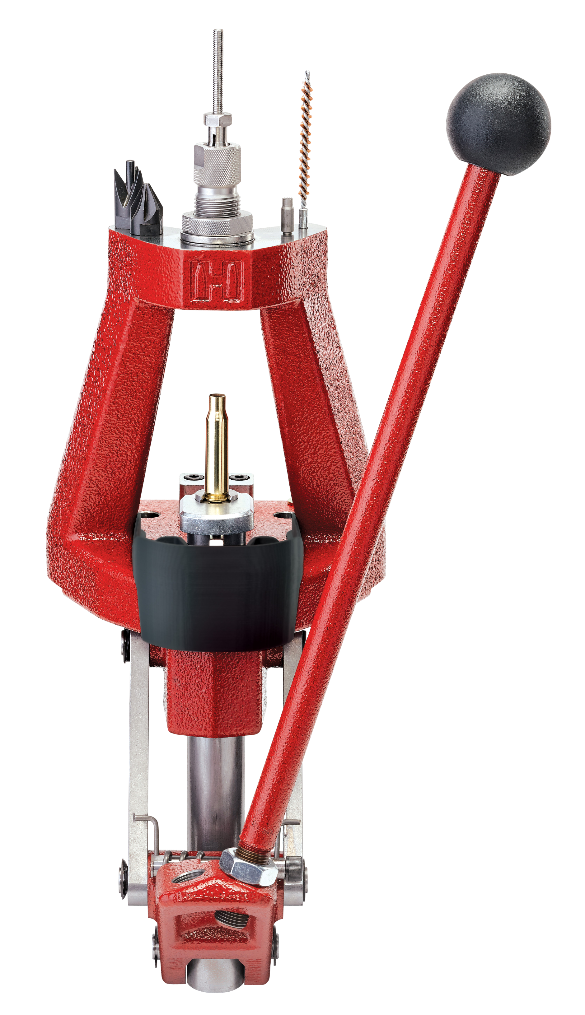 Iron press loader is a heavy duty, fully ambidextrous, cast iron frame.The iron press is built to be the heaviest, most rigid press in its class.Tight tolerances in manufacture and assembly combine to provide consistency and precision that will deliver match accurate ammunition, round after round, year after year.The available gravity fed automatic priming system (sold separately or with the lock n load iron press reloading kit), combined with the accessory mounting deck, increases reloading efficiency by allowing more processes to occur simultaneously.The iron press is the first of its kind to allow the ability to deprime, pause and remove the case to chamfer & deburr etc., then replace and prime.The accessory mounting deck provides the hand loader with many options for quick access to items such as trays for bullets or cases, chamfer and deburr tools, case neck brushes, primer pocket cleaners and many more.Further ease of use comes from exclusive features such as a spring assist 1 1/8 inch solid steel ram and the patented shell holder platform.The iron press comes with the patented lock n load bushing system that makes changeovers lightning fast.The hornady lock n load iron press is best in class; a heavy weight reloading machine that sets the standard for rigidity and performance.Standard features include cast iron frame, hornady ap mounting patern, patented lock-n-load bushing system, patented shell holder platform, manual prime system, accessory mounting deck, and 1 1/8 inch solid steel ram.