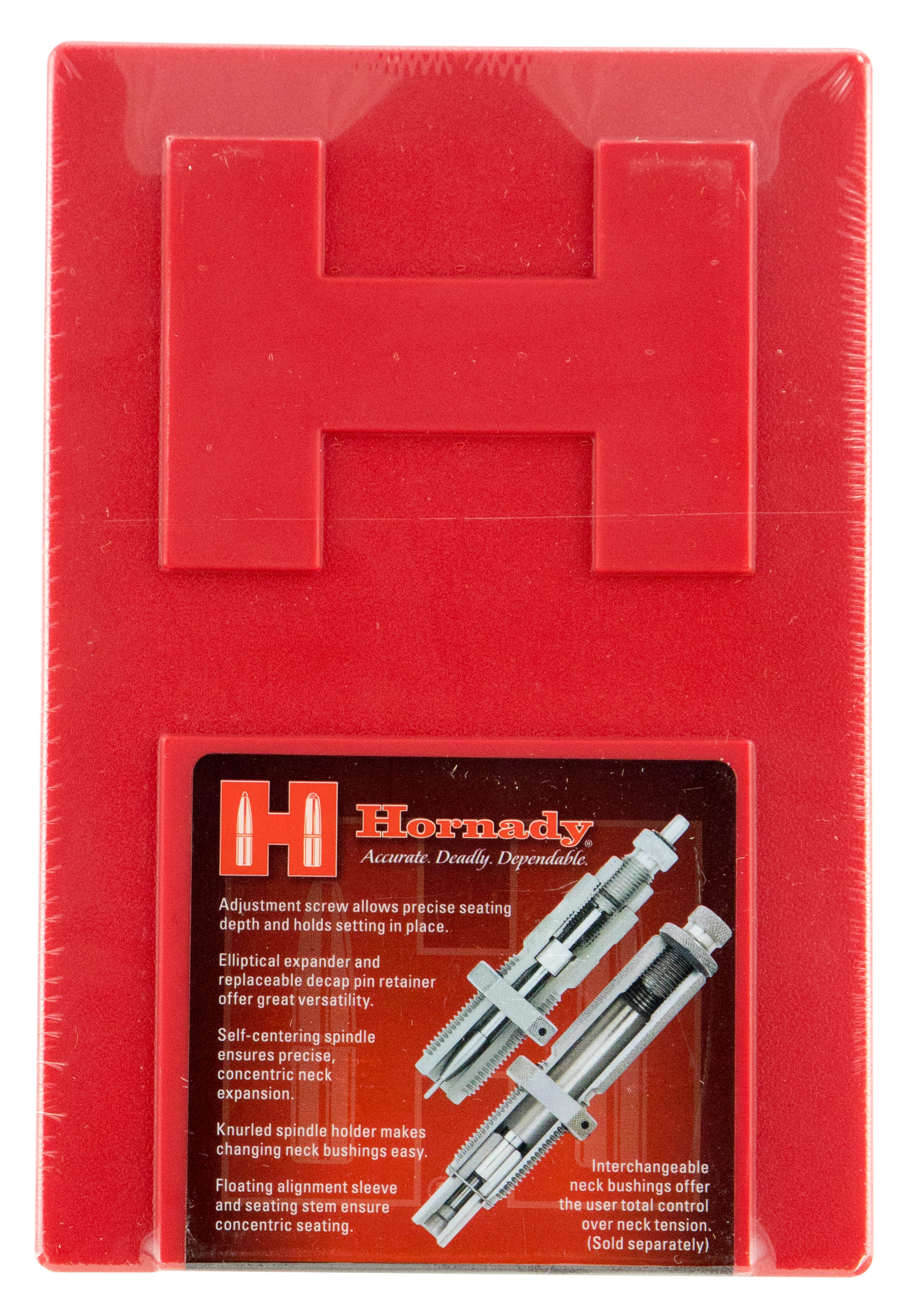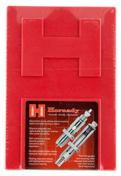 The match grade full-length die features a free-floating, self-centering spindle designed to ensure precise, concentric neck expansions.It also features a knurled spindle lock that provides easy adjustment of decapping features.