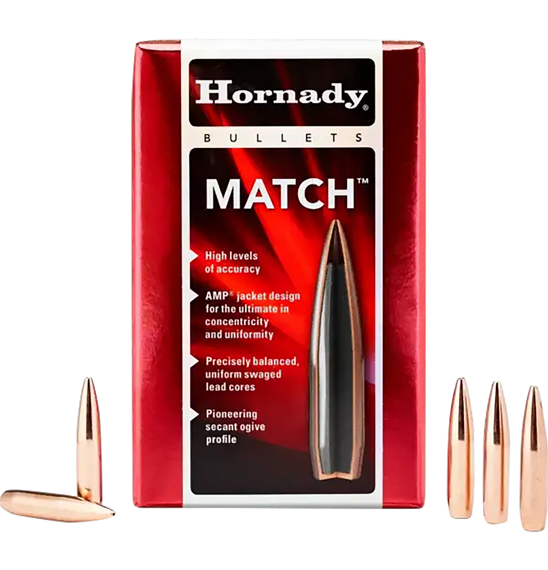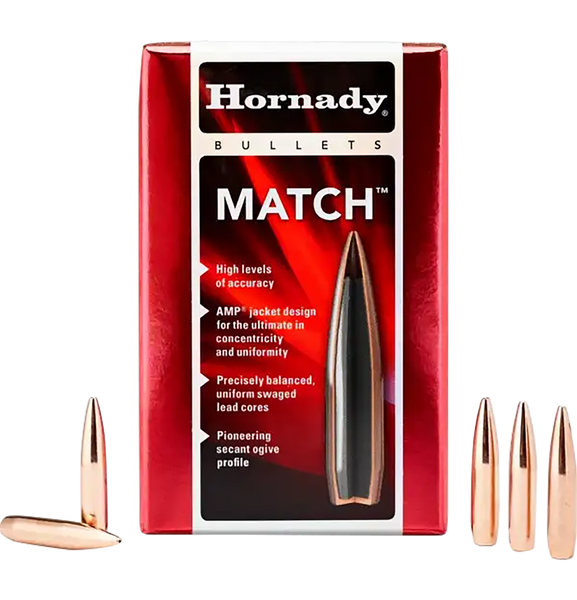 Hornady's match bullets features the revolutionary amp (advanced manufacturing process) bullet jacket.The bullet jackets are a technological advancement in design, tooling, and manufacturing that combine to produce the most consistently concentric bullet jackets available.Coupled with precision swaged cores and manufactured to the tightest standards in the industry, hornady match provides consistency, high ballistic coefficients and unprecedented levels of accuracy.Its geometric profile works to produce low...View more