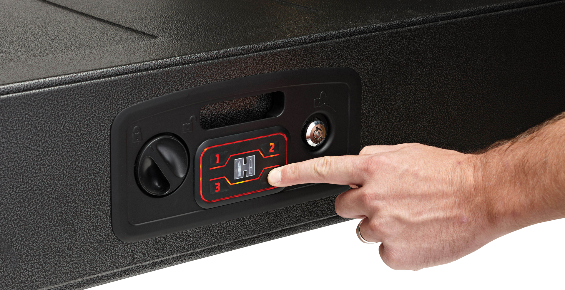 The ar gunlocker provides tamper-proof security for you rifles or shotguns.Its front-end spring loaded door makes it a perfect companion under a bed, in the back of an suv or mounted in a closet.Foam inserts accommodate up to two tactical length rifles and/or shotguns.Features fast and dependable touch-free entry with rfid activated by wristband, key fob or sticker that instantly opens spring-assist lid; convenient keypad access for secondary entry method, user can program a four to six digit security code; certified child-resistant; heavy-duty, tamper proof construction exterior housing is made of thick 16 gauge steel with four internal hardened locking lugs; easy installation, the cable and pre-drilled mounting holes make installation quick and easy; ac and battery power ensures your firearm is protected and ready to go 24/7.Includes wall power supply, rfid wristband, two rfid stickers, rfid key fob, security cable and two circular barrel keys.