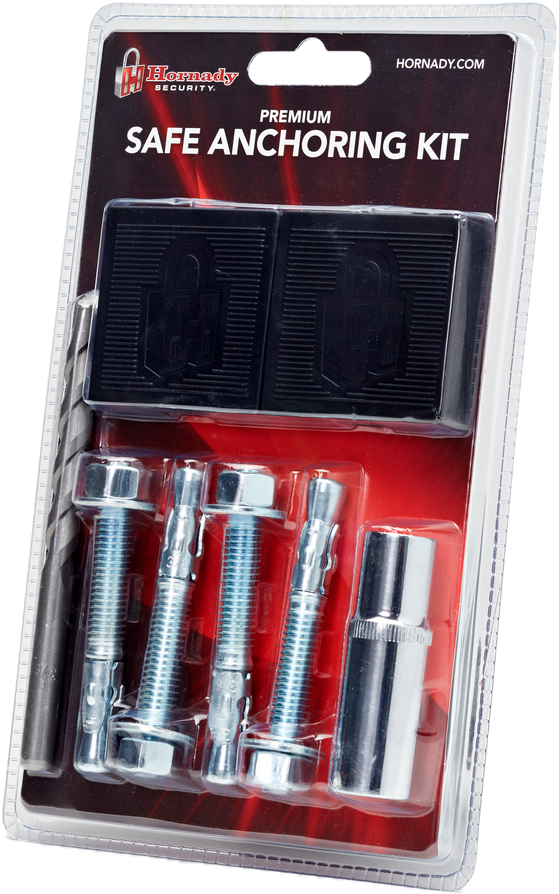The premium safe anchoring kit includes everything needed to secure your hornady security safe to a concrete floor.Four polymer shims help level the safe in place, while the included carbide concrete bit can be used to drill holes in the concrete floor.Includes carbide bit, drive socket and dusting cloth.