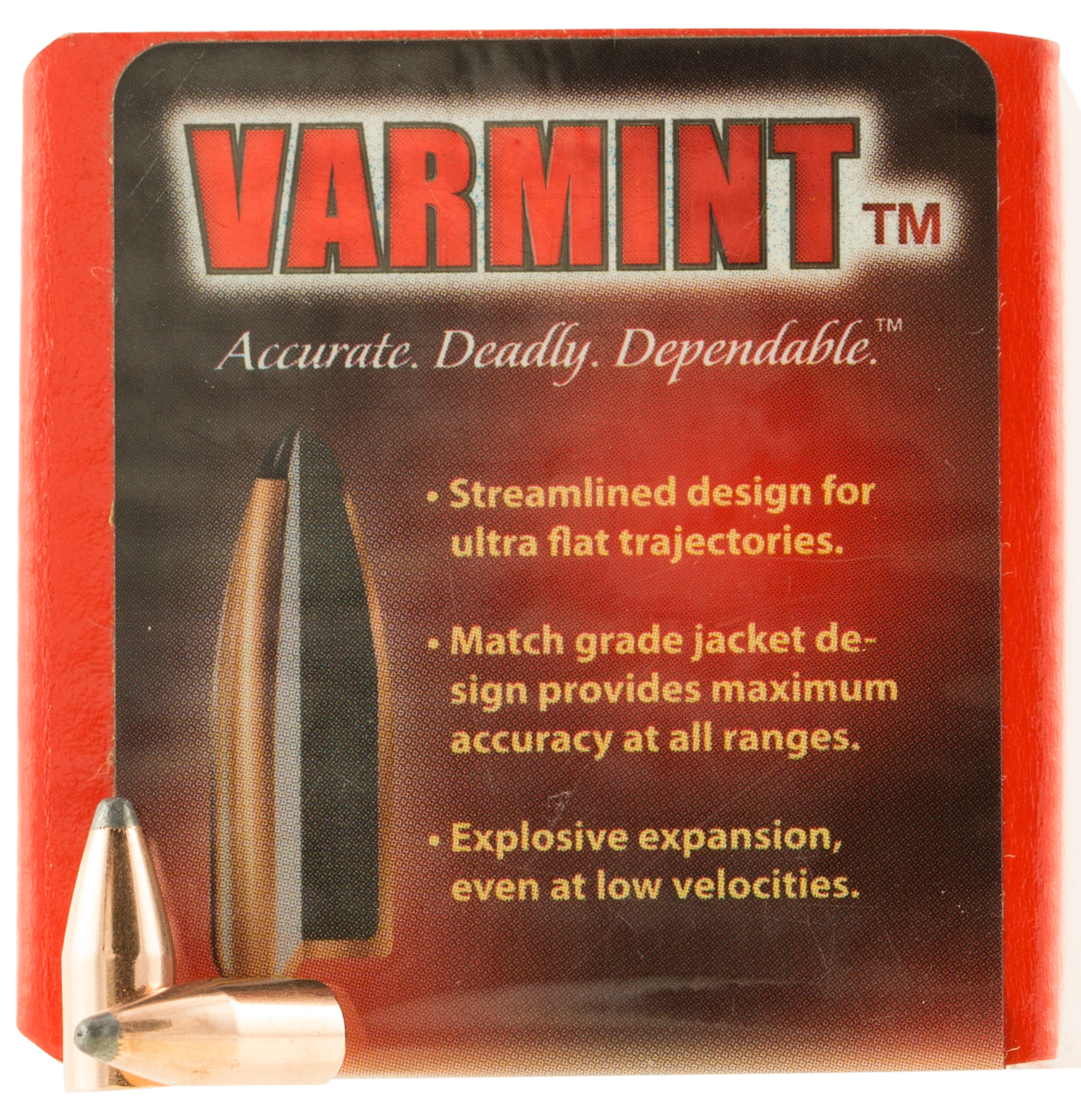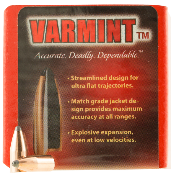 The hornady traditional varmint bullets features a streamlined design for flat trajectory.Its lead core and match-grade copper jacket represent the original standard created by joyce hornady for classic varmint hunting.Primarily comprised of spire point profiles and flat base designs, the bullets perform extremely well even at low velocities and deliver excellent performance in many classic varmint rifles.
