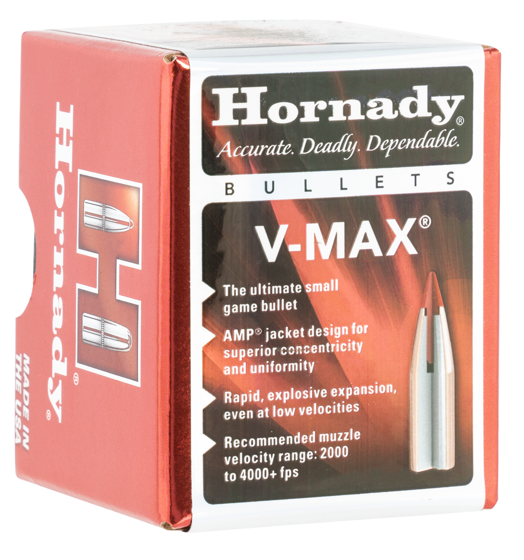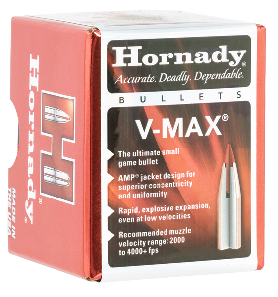 The dramatic fragmentation of the v-max bullet comes from a combination of the gilding metal jacket, specially designed core and polymer tip.The polymer tip and streamlined design results in flat trajectories, while the concentrically of the match grade jacket design provides maximum accuracy at all ranges as well as explosive expansion.