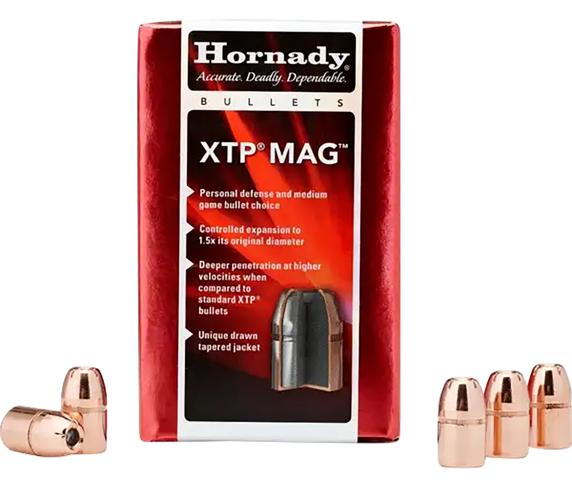 Designed for hunting, self-defense and law enforcement applications, the xtp bullet demonstrates the kind of accuracy that led many competitive shooters to adopt it.The stopping power of the xtp bullet has a truly built its world-class reputation.Precise serrations divide the bullet into symmetrical sections, strategically weakening the jacket and initiating controlled expansion even at low velocities.The gilding metal jacket protects the nose of the bullet, while the total uniformity of core density ensures balanced expansion as well as in-flight stability.The xtp mag bullets provide the same controlled expansion, accuracy and dependability as regular xtp's, but are built to withstand the higher velocities and impacts from ultra-powerful, magnum handguns.