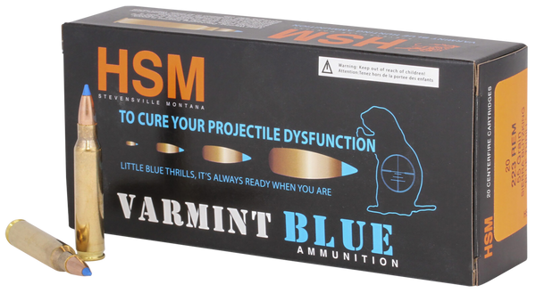 Hsm varmint loads employ the same degree of engineering thoroughness as articulate hsm match ammo.Accuracy again is at the apex of consideration when each component is chosen.Specifications: 223 rem/55 gr/sierra blitzking/20 per box/25 cs
