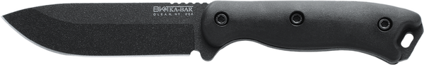 The short becker knife is a modestly sized field knife perfect for belt or pack carry.Made as a solid one piece design, it is constructed of 1095 cro-van with a ridged thumb serration area to help with control during pressure cutting.The blade has been flat ground to maintain strong edge retention and provide for easy sharpening even in the field.Includes a molle compatible cordura sheath and an extra set of brown handles.Made in the usa.