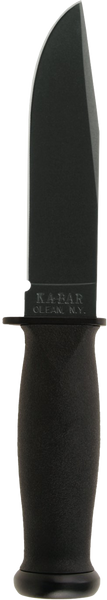 Issued to the department of the navy during wwii, the mark i features a non-reflective black blade that is epoxy powder-coated.Tests prove the finish is more durable than ever.The classic oval shape of the original ka-bar remains and has been modernized with a material nearly impervious to sweat, chemicals, water and wear - kraton g.Tang stamped usn.Molle compatible hard plastic sheath included.Made in the usa.