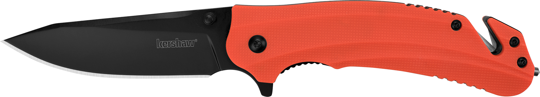 The barricade has all the key features needed in an emergency knife all wrapped up in a bright orange package.A carbide glassbreaker is built into the butt end.The sculpted glass-filled nylon handle offers a secure grip whether in glass-striking position or when using the blade.If needed to free a trapped victim, the built-in cord cutter will zip through seat belts and cord quickly and easily.