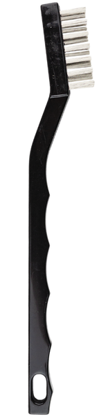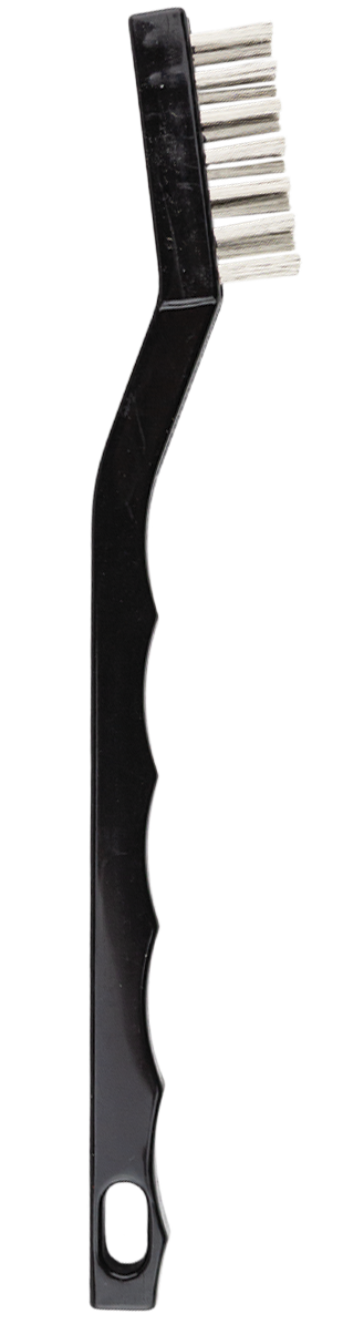 This stainless steel bristle gun brush has rugged stainless-steel bristles.It makes short work of caked-on powder residue and burn marks on revolver top straps, frames and cylinders.