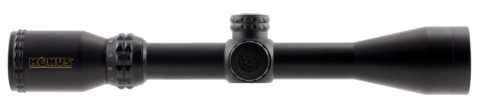 The konuspro 550 exclusive ballistic reticle, provides a system of reference lines for exact aiming points out to 550 yards.Lateral hash marks allow for precise leads of moving targets as well as compensating for strong crosswinds.The engraved illuminated ballistic reticle is unbreakable and the multi-coated optics are clear and bright.Finger adjustable windage and elevation adjustments.It includes lens caps, battery and a lens cleaning cloth.Adj Size:...View more