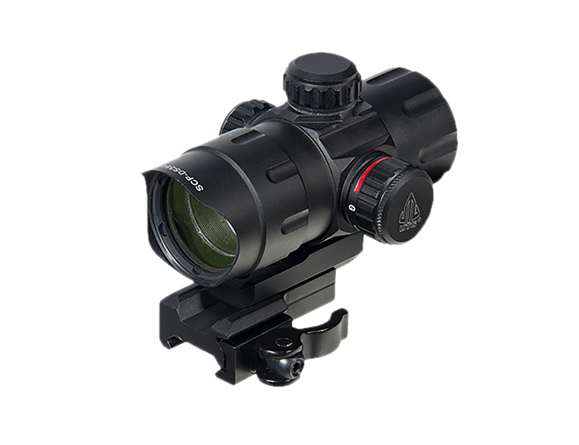 The utg 4.2" ita red/green t-dot sight with a qd mount and riser adaptor is built on the true strength platform, ensuring durability and precise adjustments.It is completely sealed, making it shockproof, fogproof, and rainproof for reliable performance in various conditions.The intuitive red/green t-dot reticle allows for quick target acquisition, ideal for swift execution of t-zone and center mass hits, with a fine adjustment rheostat for variable intensity control.Offering a great field of view and unlimited eye relief, the sight features a non-reflective emerald-coated lens for enhanced clarity.With the included riser adaptor, it achieves an optimal height to co-witness with iron sights, and its offset and center height adjustability allow for easy adaptation to both the shooter and firearm.Designed to improve target acquisition, shooting accuracy, and overall performance, this versatile optic is suitable for a wide range of firearms applications.It comes complete with flip-open lens caps and a picatinny quick-detach lever lock mounting base for convenience and secure attachment.