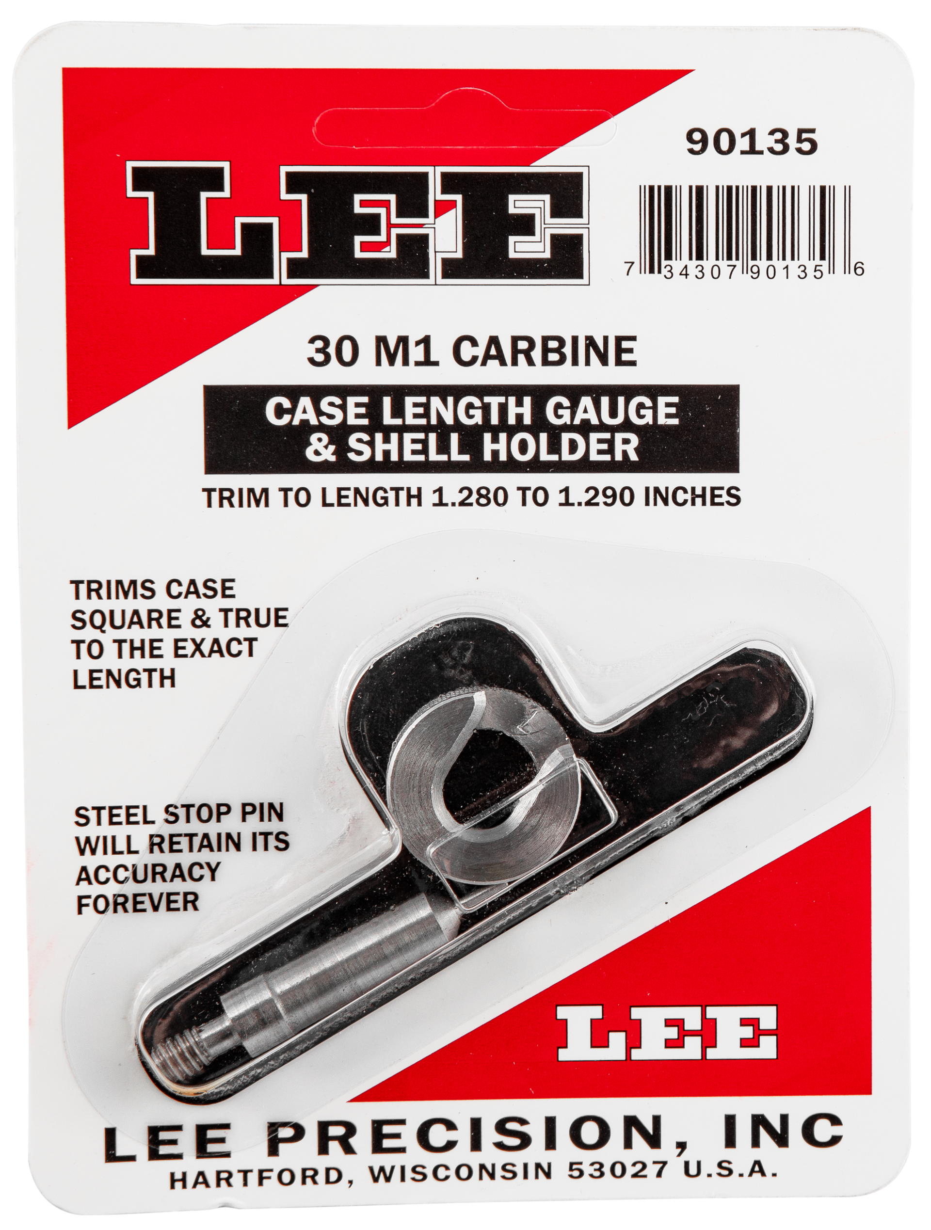 Lee 30m1 carbine case length gauge is a precise, easy way to trim to length and square the case mouth.Used with the cutter and lock stud or zip trim.Trim to length 1.280 to 1.290 inches.