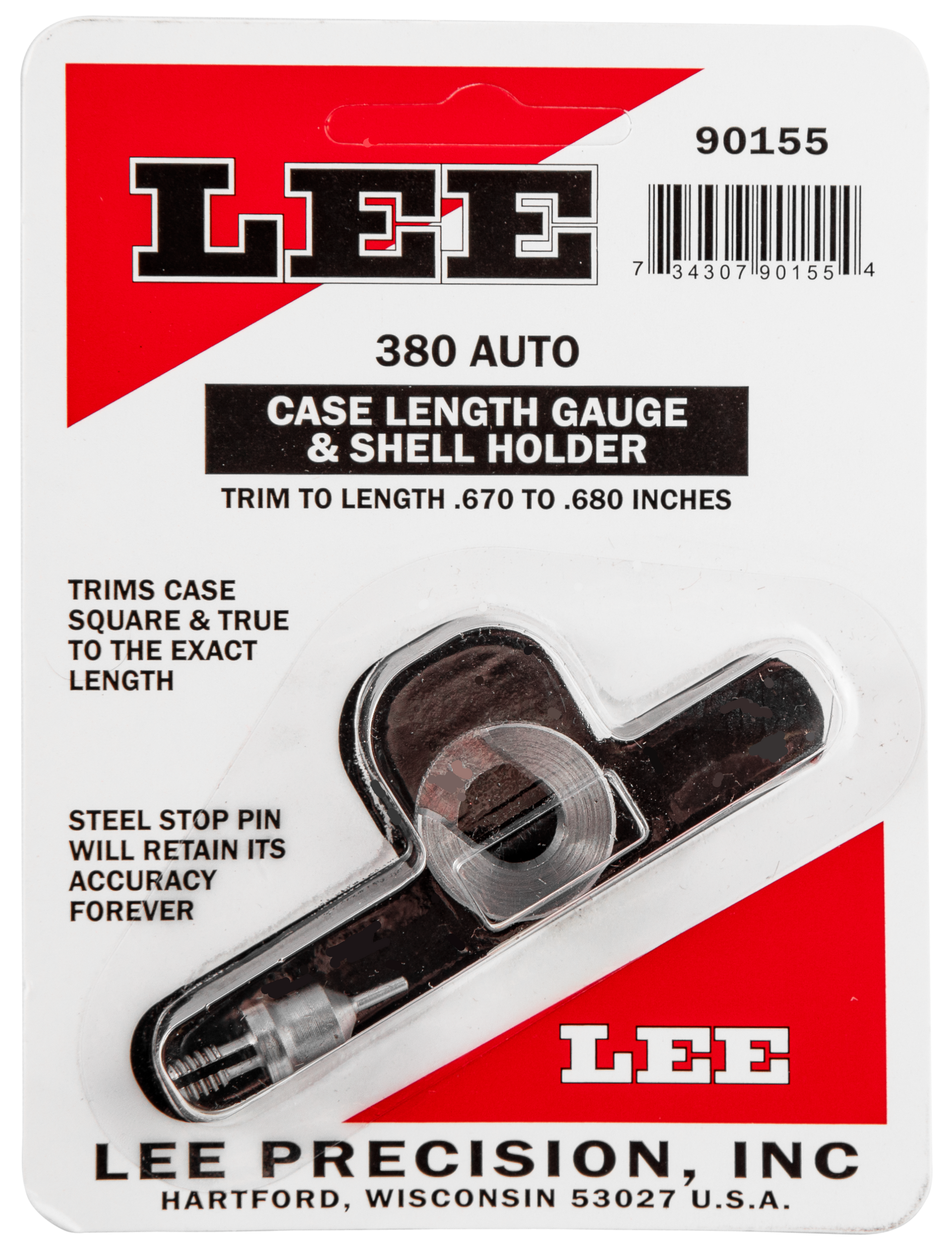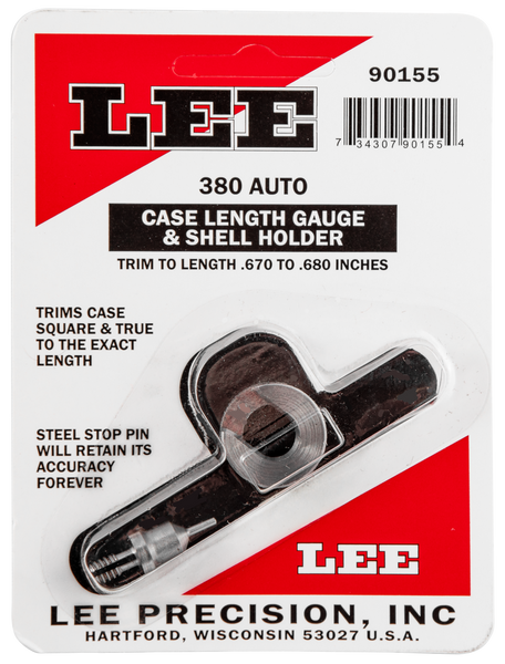 Lee 380 auto case length gauge is a precise, easy way to trim to length and square the case mouth.Used with the cutter and lock stud or zip trim.Trim to length.670 to.680 inches.