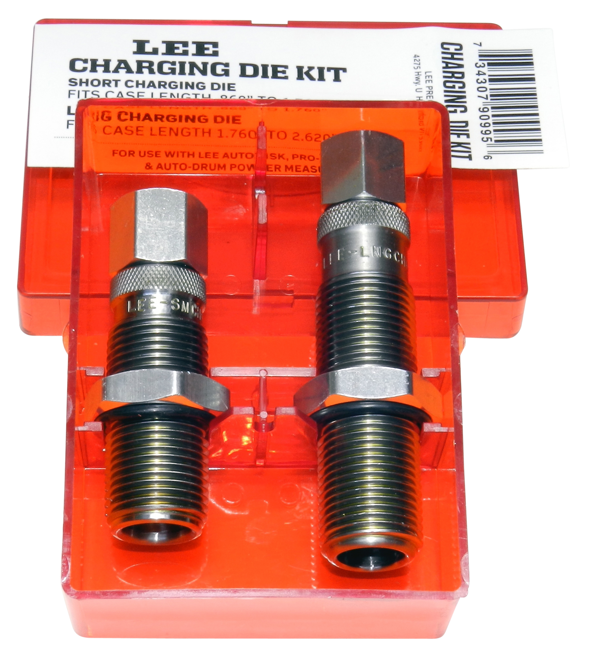 Lee's short and long charging dies are included in this kit for use with the auto-disk, pro auto-disk and auto-drum powder measure.It works with cases.860 to 2.620 inches long, and bullet diameter.223 and larger.Works the same as the pistol powder through expanding die, except it doesn't expand the case mouth.Rifle case expansion is done in the sizing die.