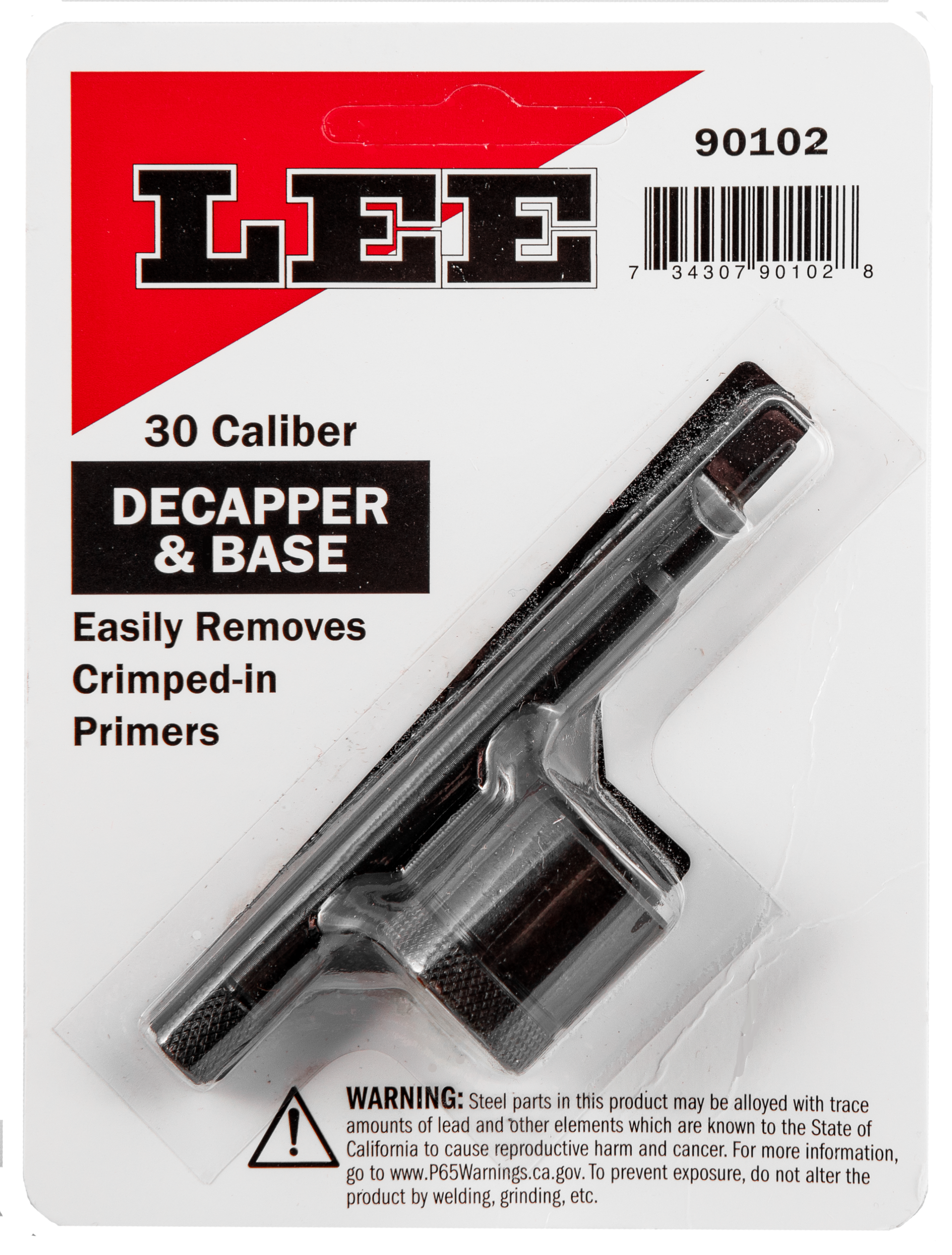 This decapper and base easily removes crimped in primers from military cases.The primer pocket is a double ended design that cleans both large and small primer pockets.