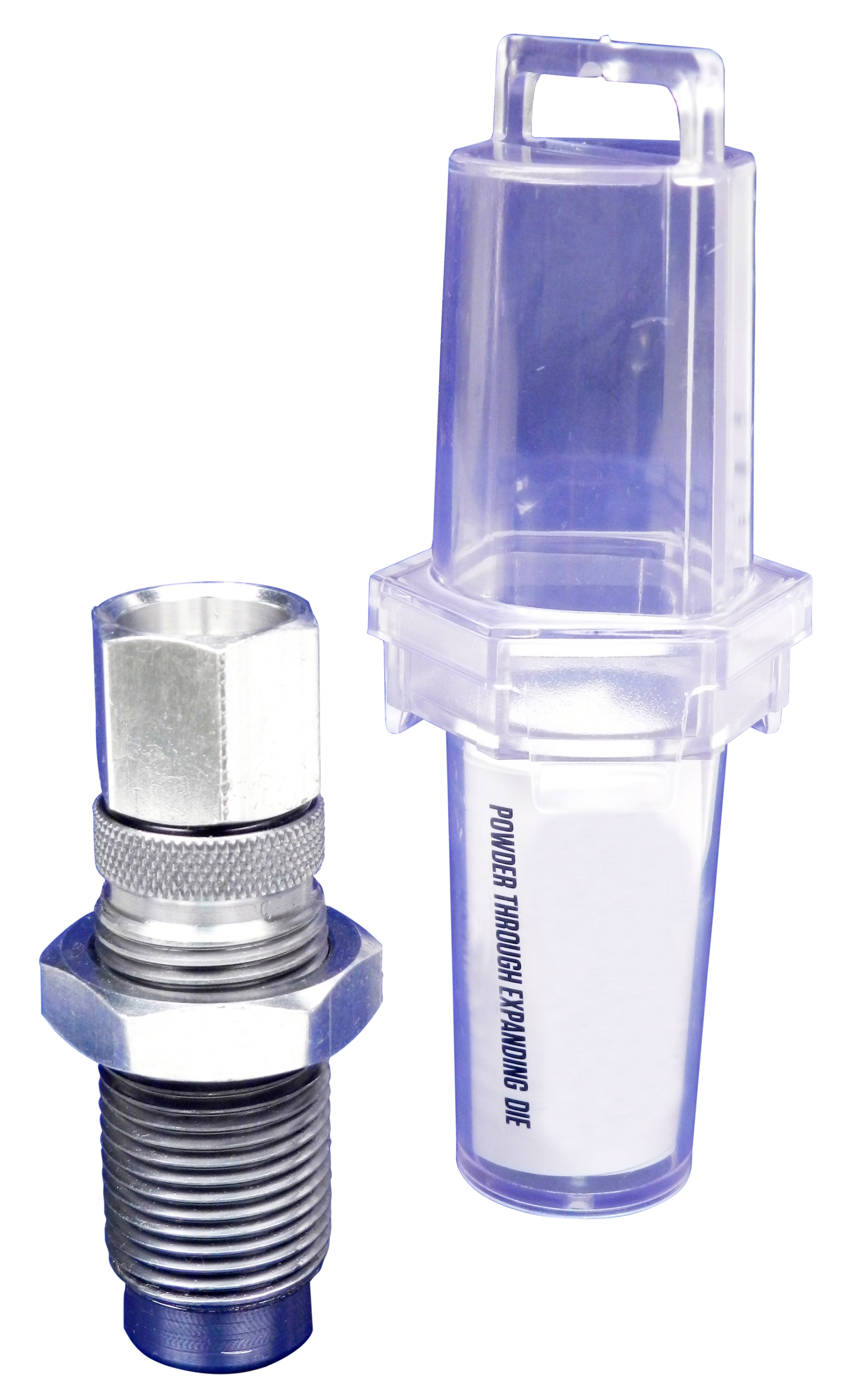 Lee's powder thru expanding die charges the case while expanding the case mouth.It is used with a powder funnel adapter or the auto disk or pro auto disk powder measure.